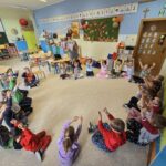 W piątek, 31 października 2025 r., dzieci z grupy „Kangurki” obchodziły Dzień Dyni. Z tej okazji przedszkolaki wykonały piękne kompozycje na cmentarz, wykorzystując dynie jako główny element dekoracyjny. Zajęcia sprawiły dzieciom wiele radości przy tym rozwijając wyobraźnię, kreatywność oraz zdolności manualne. Dzień upłynął w miłej, twórczej atmosferze pełnej kolorów jesieni. 🍂 🎃