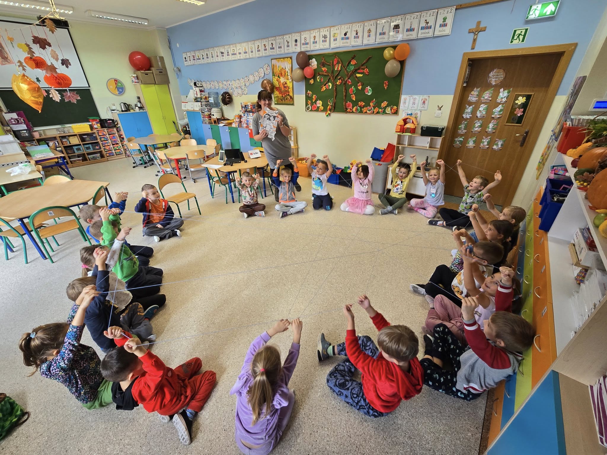 29 października, w Dzień Internetu grupę 0a odwiedziła szkolna pedagog, pani Klaudia Poskróbek aby porozmawiać z dziećmi o tym, czym jest Internet i jak bezpiecznie z niego korzystać. Dzieci były zachwycone tworzeniem sieci, a nade wszystko pomocami, które ze sobą przyniósł gość. Laptop, myszka i inne urządzenia, dzięki którym możemy korzystać z Internetu wzbudziły nie lada sensację i zainteresowanie.