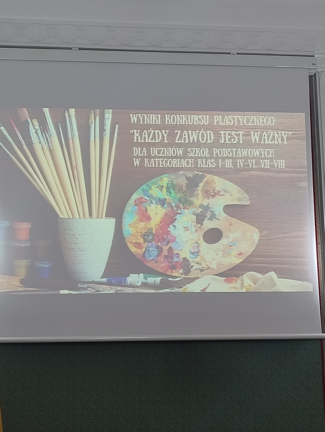 Nadia Klimczak, uczennica klasy 8A, zdobyła wyróżnienie w konkursie plastycznym „Każdy zawód jest ważny”. Piękna, estetyczna praca Nadii przedstawiała wiele ważnych zawodów: budowlańca, architekta, lekarza, sprzątaczkę, kierowcę, elektryka, hydraulika. Składamy Nadii ogromne gratulacje, zwłaszcza, że nadesłanych prac do komisji było bardzo dużo. Komisja miała nie lada problem z wyborem najlepszych prac.