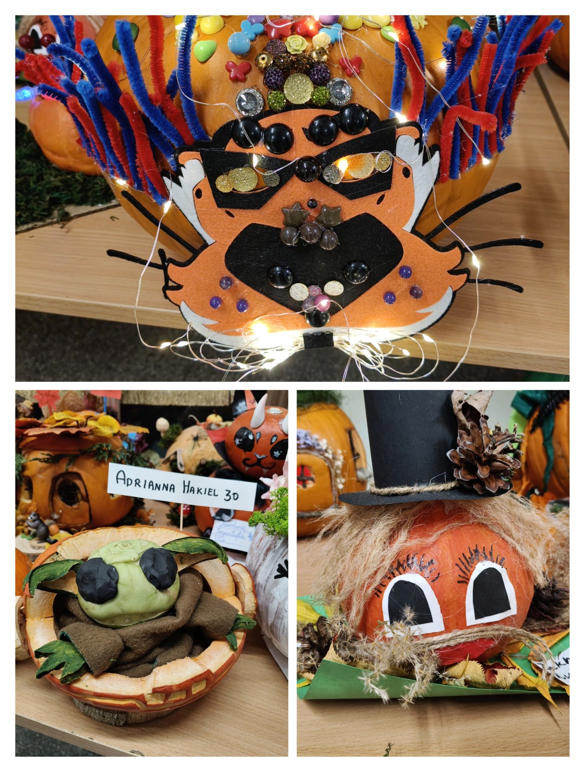 W naszej szkole odbyła się kolejna edycja Konkursu na Najfajniejszą Dynię, który jak co roku cieszył się ogromnym zainteresowaniem uczniów. Kreatywność i pomysłowość dzieci przeszły najśmielsze oczekiwania – na konkurs trafiły dynie przerobione na postacie z bajek, fantastyczne stwory, a nawet miniaturowe scenki rodzajowe!