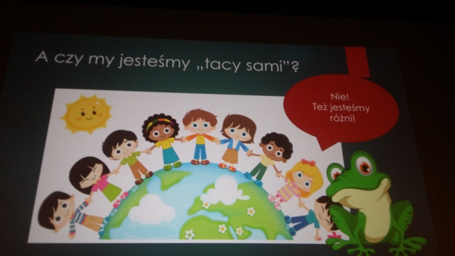 Tradycyjnie przed projekcją filmu uczniowie wysłuchali i obejrzeli prelekcję nt.: ”Inny, ale swój. Spotkania z odmiennością”, która poruszała następujące zagadnienia edukacyjne:
