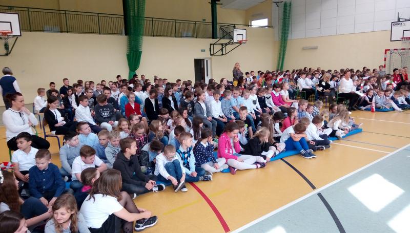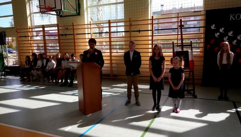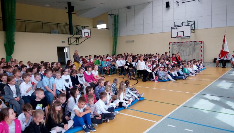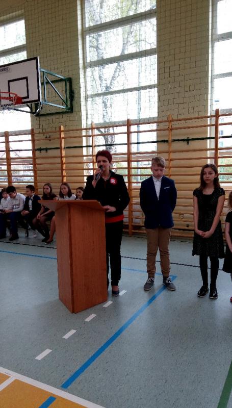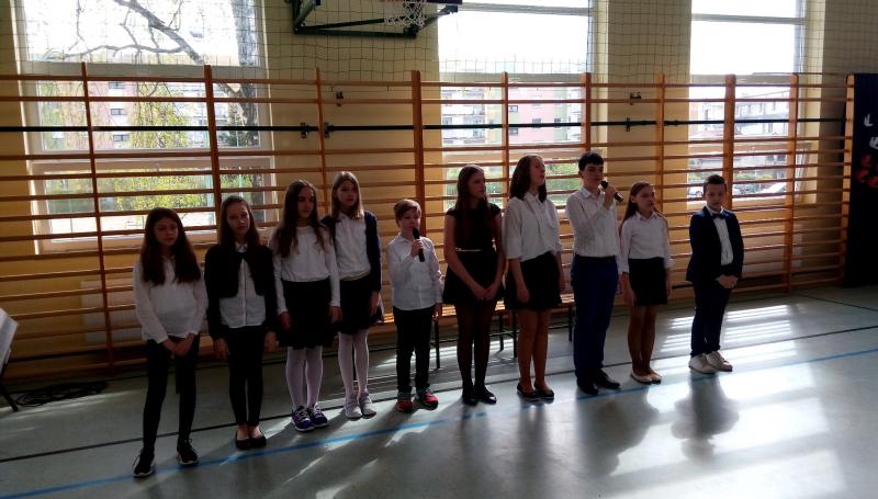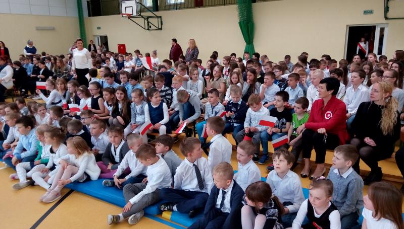 Na wstępie głos zabrała Pani Dyrektor Iwona Nowicka, następnie uczniowie przedstawili część artystyczną. Recytacje i piękny śpiew naszego chóru stworzyły piękną atmosferę tego świątecznego dnia. Galowe stroje uczniów i biało-czerwone akcenty potwierdziły, że warto kultywować takie patriotyczne uroczystości i przypominać uczniom o chlubnych kartach naszej historii.