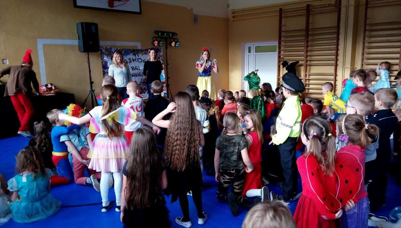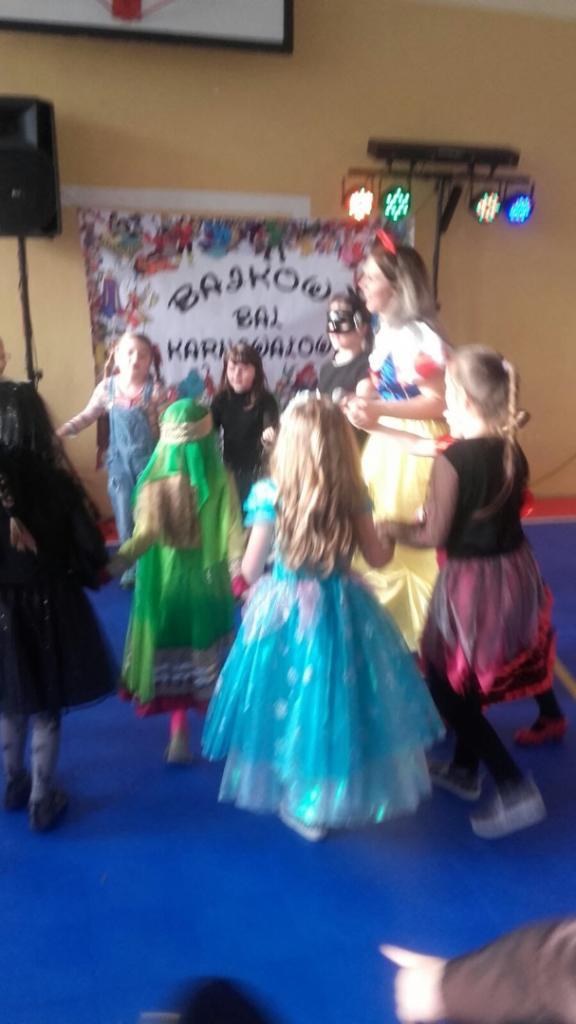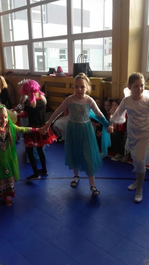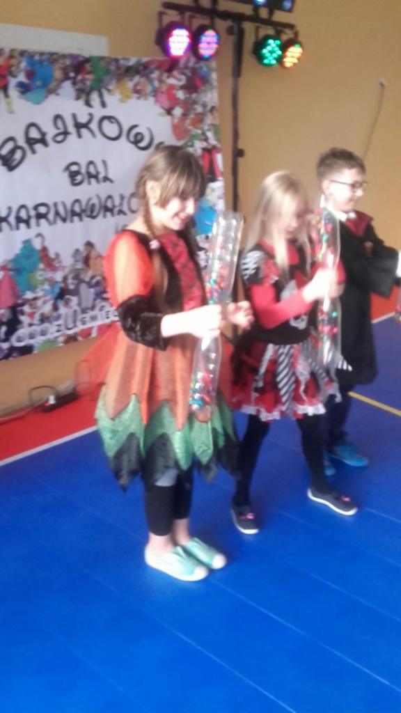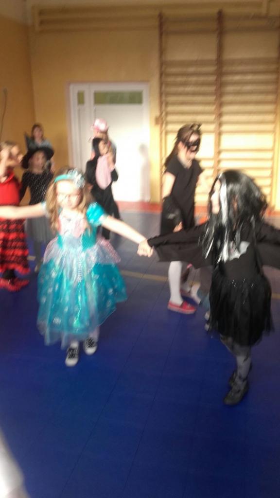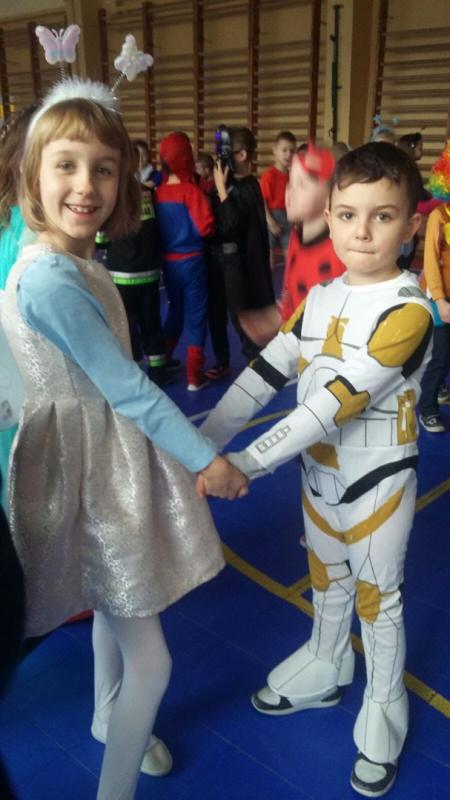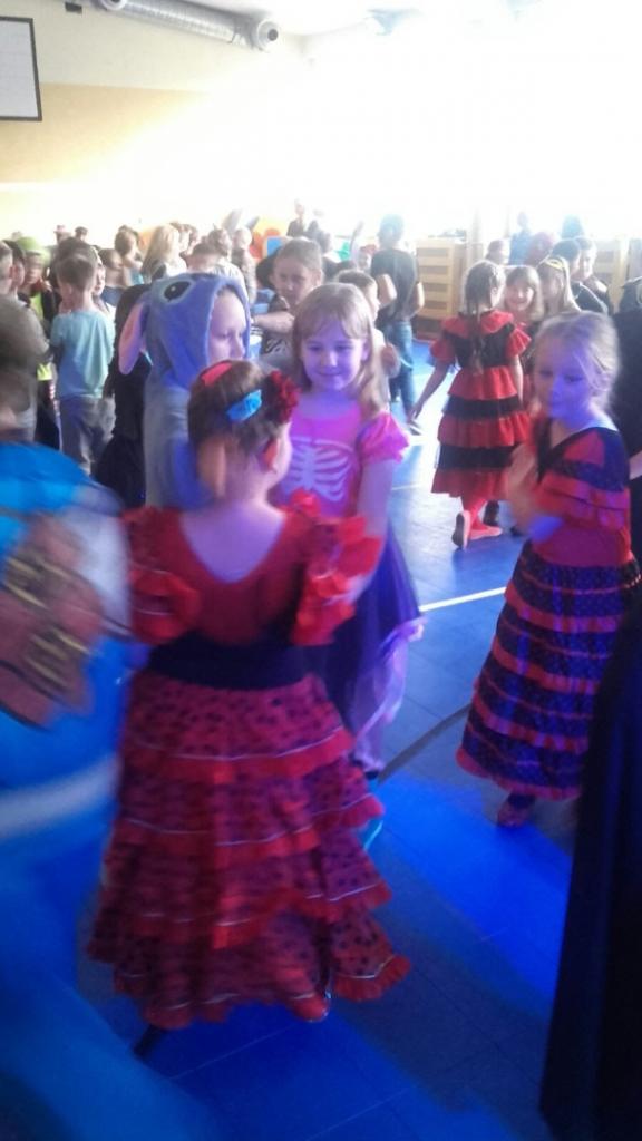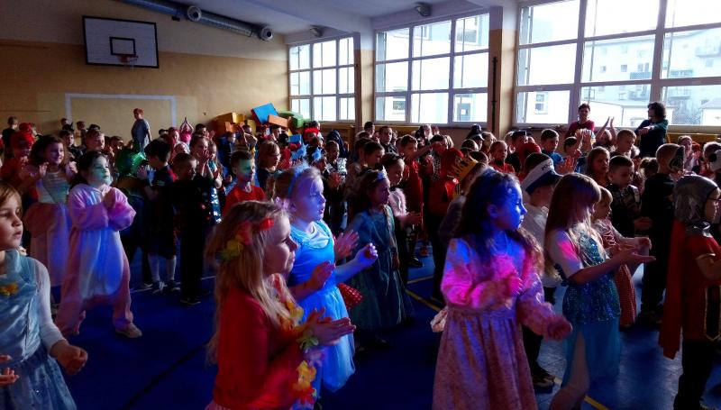Dzieci przebrane były w piękne, kolorowe kostiumy. Mimo gorącej atmosfery wszyscy wytrwali do końca. Jak na każdym balu nie mogło zabraknąć wyborów królowej i króla balu, a zostali nimi: Joanna Macyszyn z klasy IIB oraz Beniamin Jednoralski z klasy III A.
