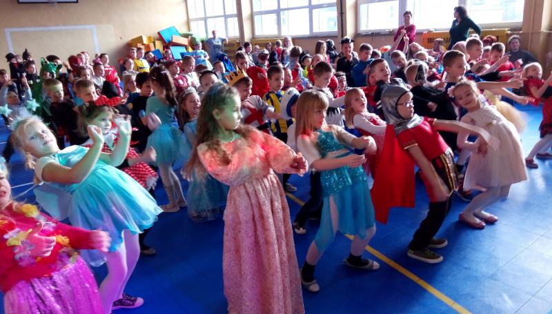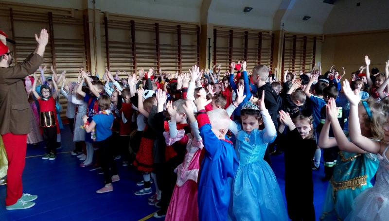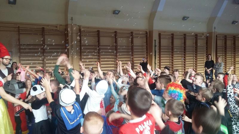 08.01.2018 r. w naszej szkole odbył się bal karnawałowy dla klas 0-III. Animatorzy z grupy „40 stopni” przygotowali dla naszych uczniów szeroki wachlarz atrakcji – układy taneczne, konkursy grupowe, quizy.
