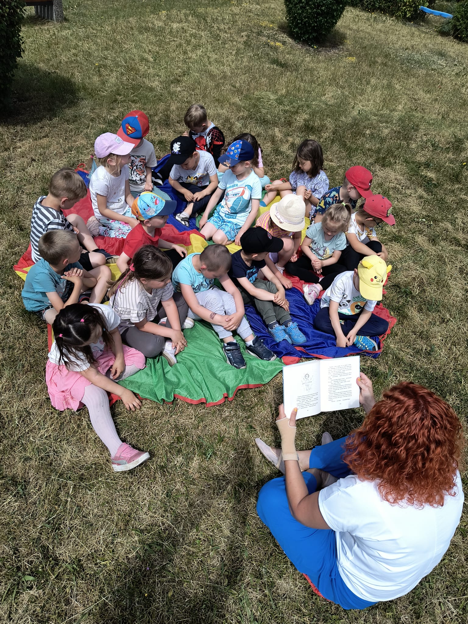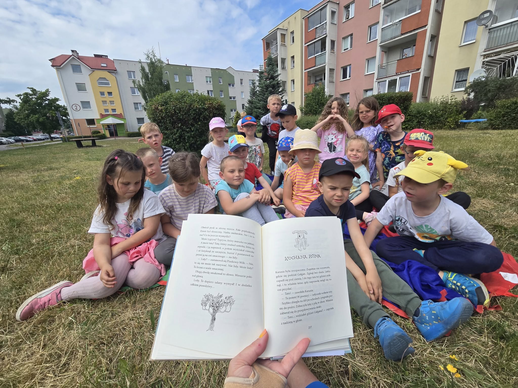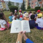 W ostatni poniedziałek roku szkolnego grupa 0a wybrała się na spacer w ramach międzynarodowej akcji #czytanienapolanie. Celem akcji jest rozpowszechnianie korzyści z czytania oraz uświadomienie dzieciom, że książka może towarzyszyć nam wszędzie, również na polanie. Warto o tym pamiętać planując wakacyjne wycieczki. Po lekturze „Piaskowego wilka” dzieci bawiły się na świeżym powietrzu.