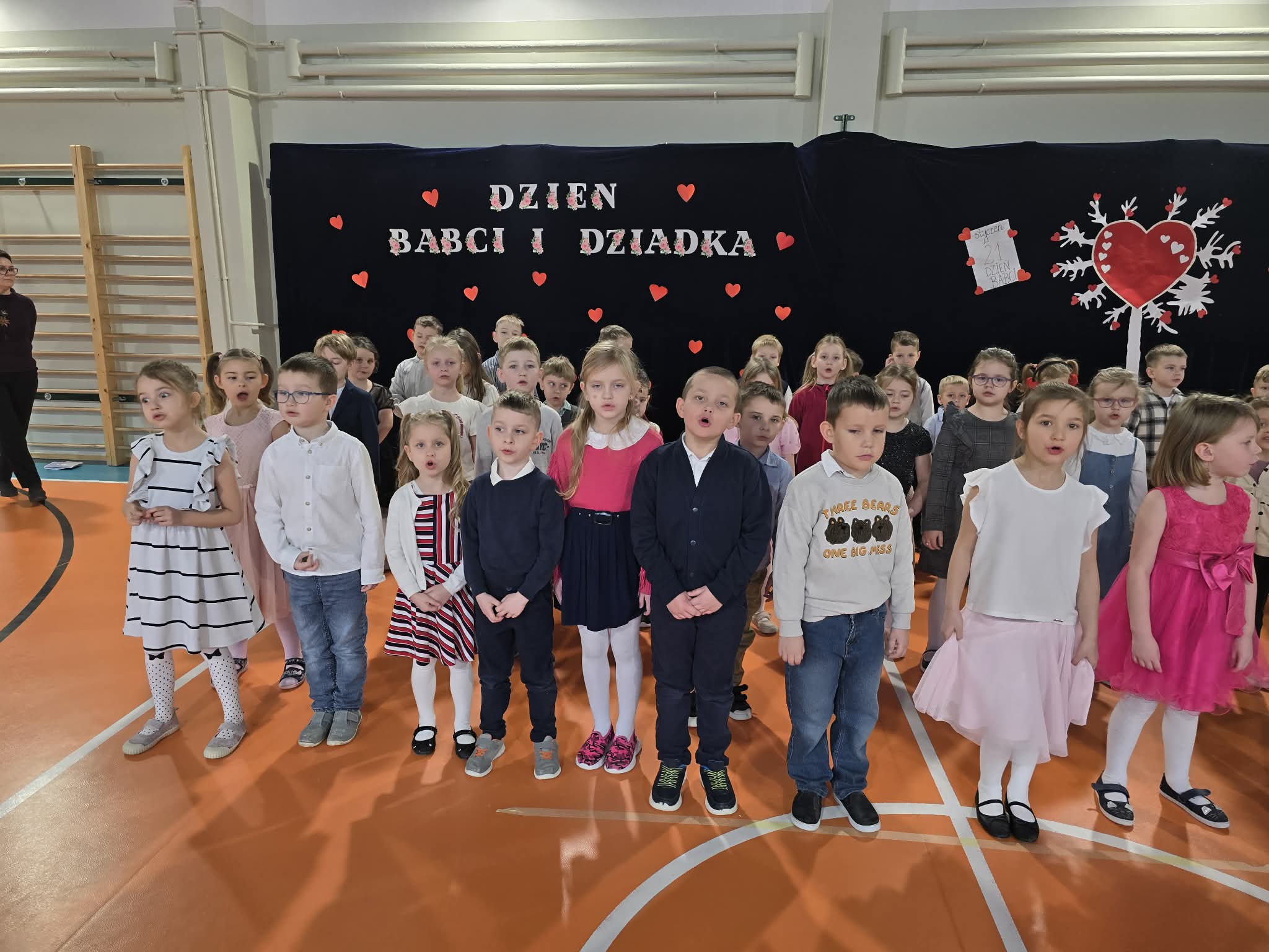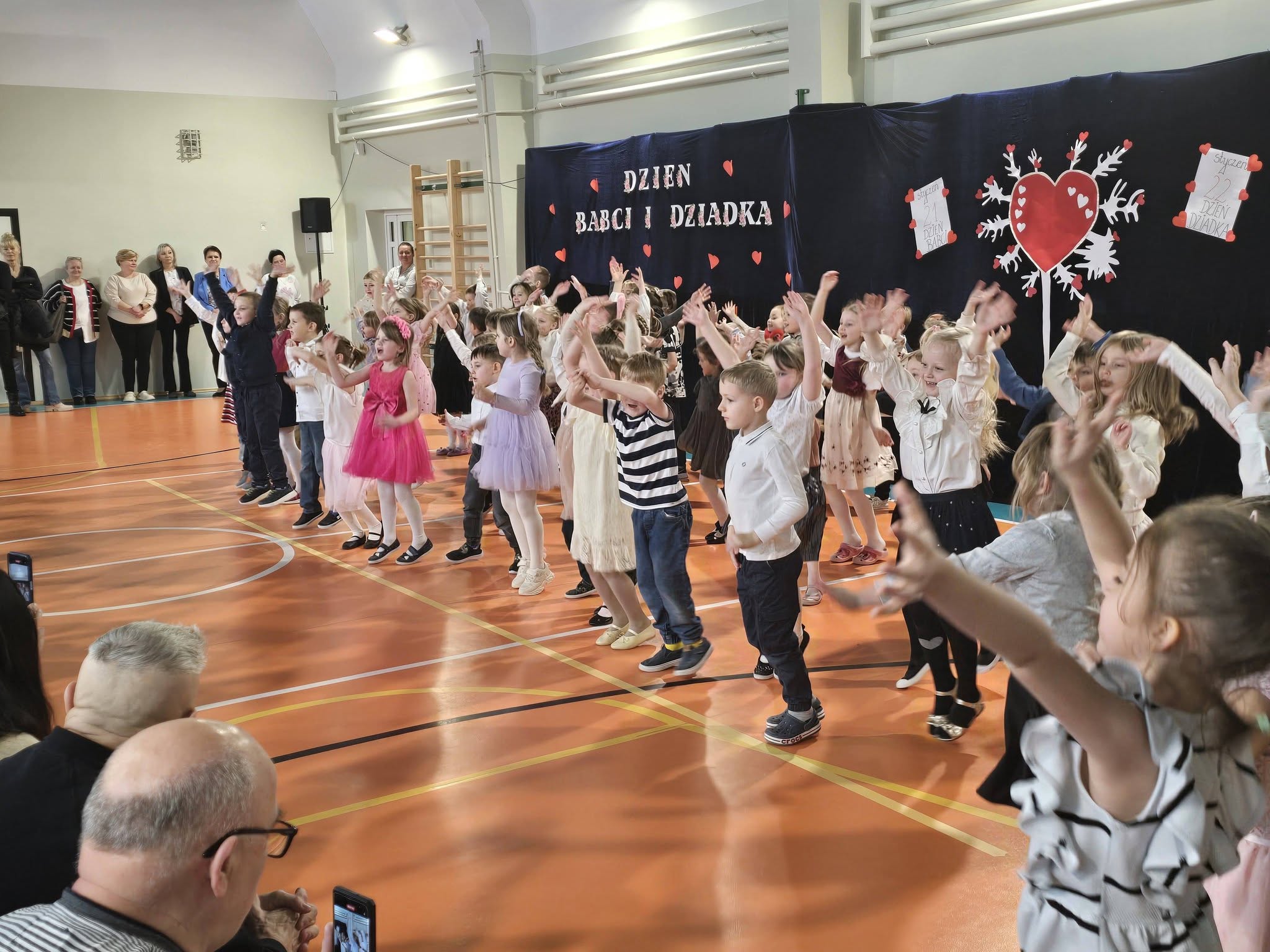 Dzieci z ogromnym zaangażowaniem zaprezentowały program artystyczny pełen piosenek, wierszyków i tańców. Nie zabrakło uśmiechów, wzruszeń oraz gromkich braw. Mali artyści włożyli w swoje występy całe serce, a radość i duma malujące się na twarzach dziadków były najpiękniejszym podziękowaniem za ich trud.