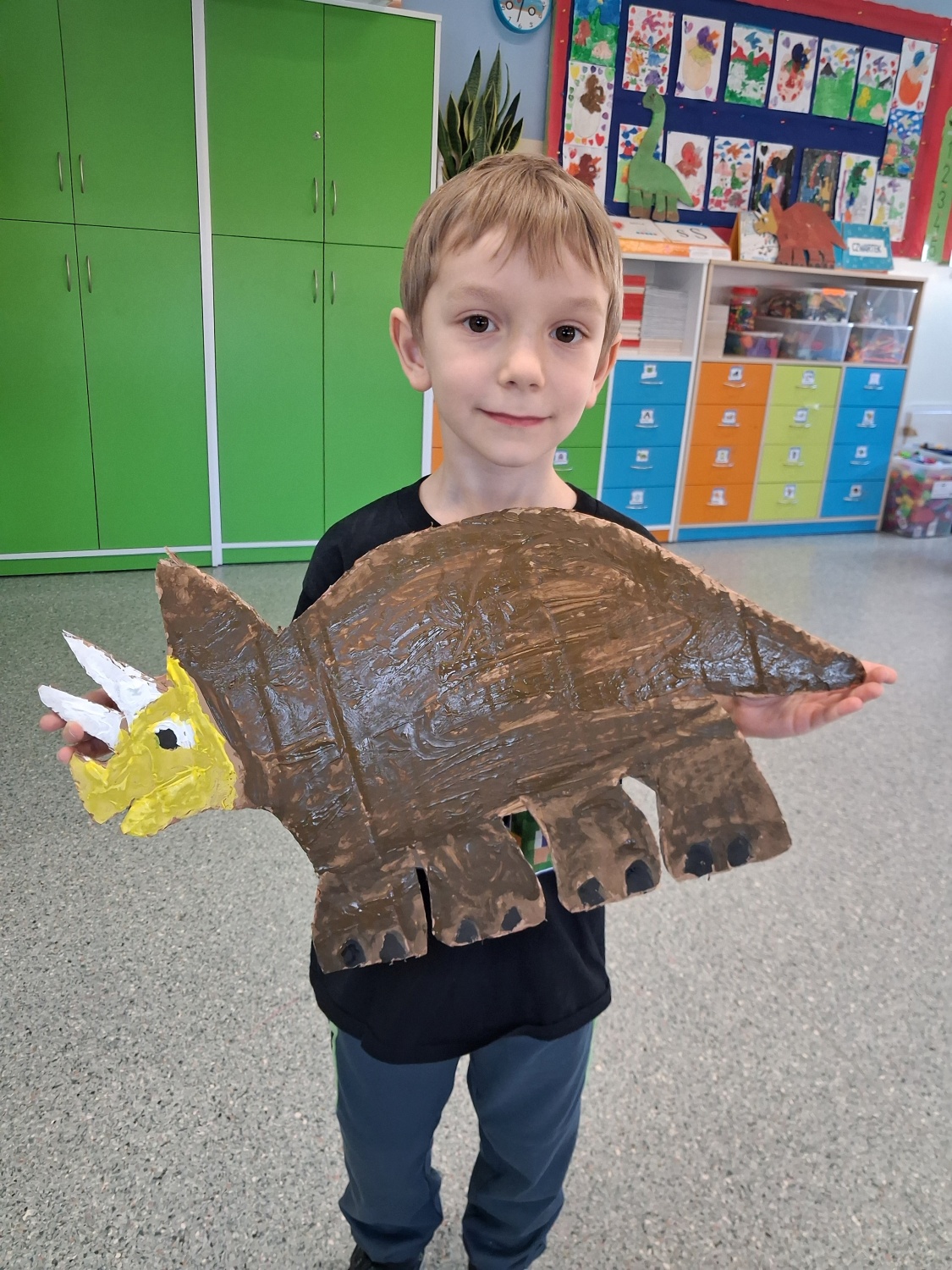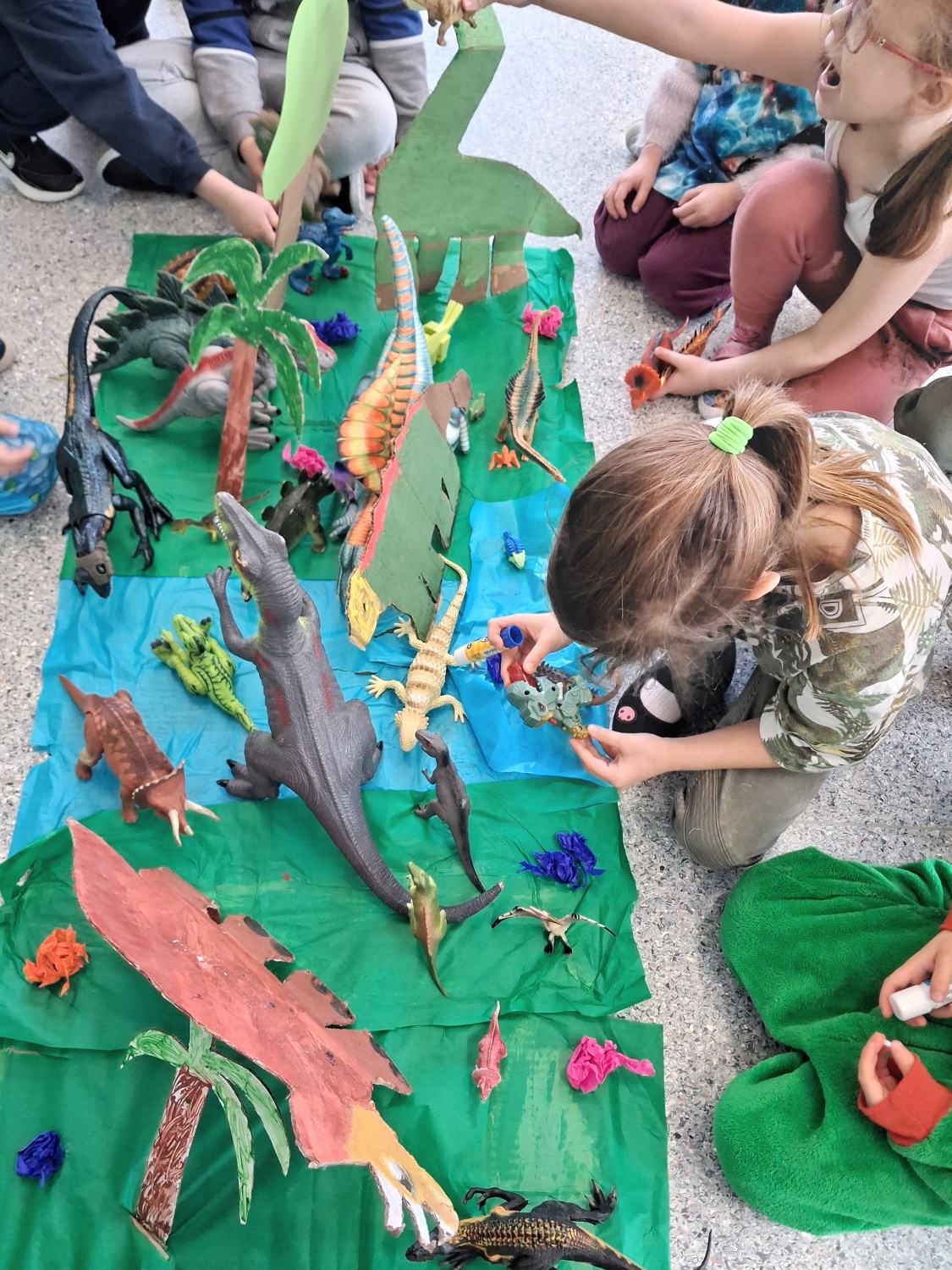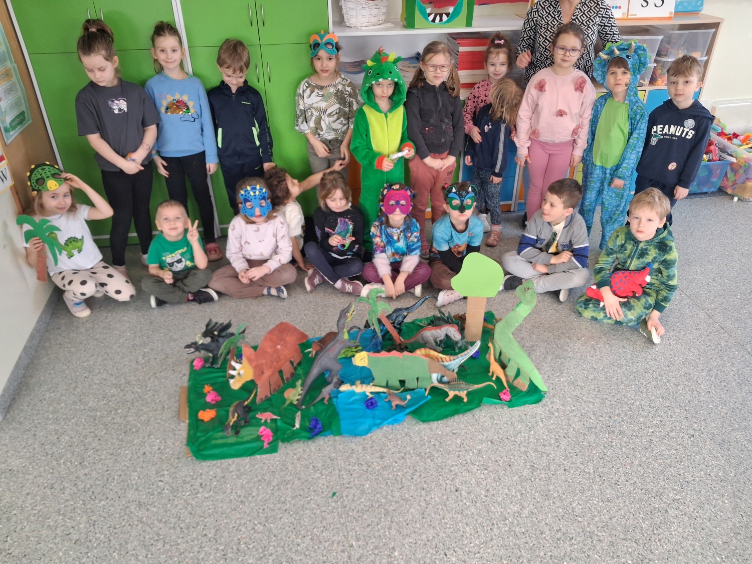 Z okazji Dnia Dinozaura dzieci poznały fascynujący świat prehistorycznych gadów. Wspólnie wykonały makietę świata dinozaurów, pomalowały farbami ich sylwety oraz wysłuchały ciekawostek na temat ich życia. Był to dzień pełen radości i twórczej zabawy.