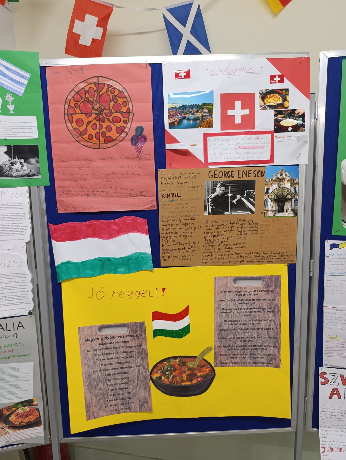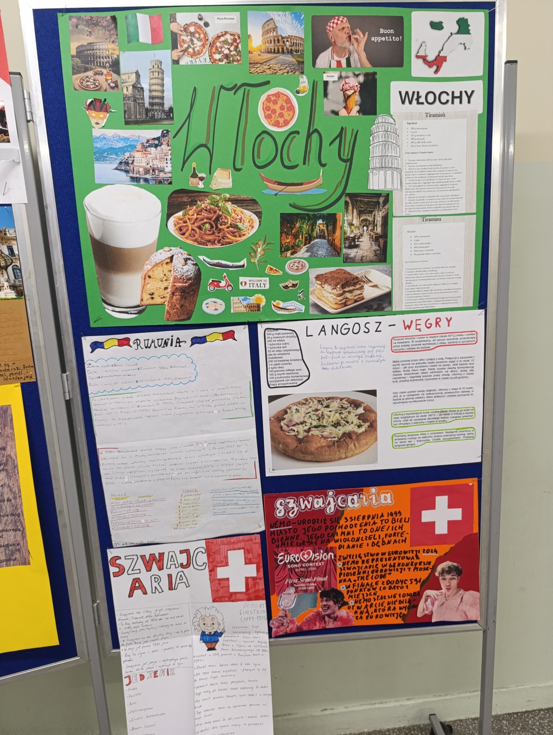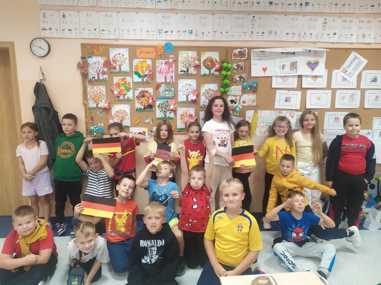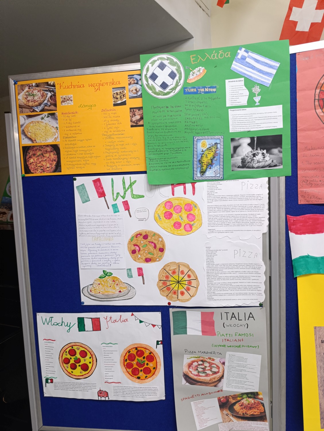 26 września świętowaliśmy w naszej szkole Dzień Języków Europejskich. Uczniowie klas młodszych przygotowali flagi wylosowanego kraju, ubrali się w jego barwy, a nawet przygotowali drobne smakołyki. Klasy starsze przygotowały plakaty ukazujące przepisy kulinarne oraz tradycyjne dania krajów europejskich. Nie zabrakło także quizów oraz ciekawostek dotyczących kultury i tradycji różnych państw.