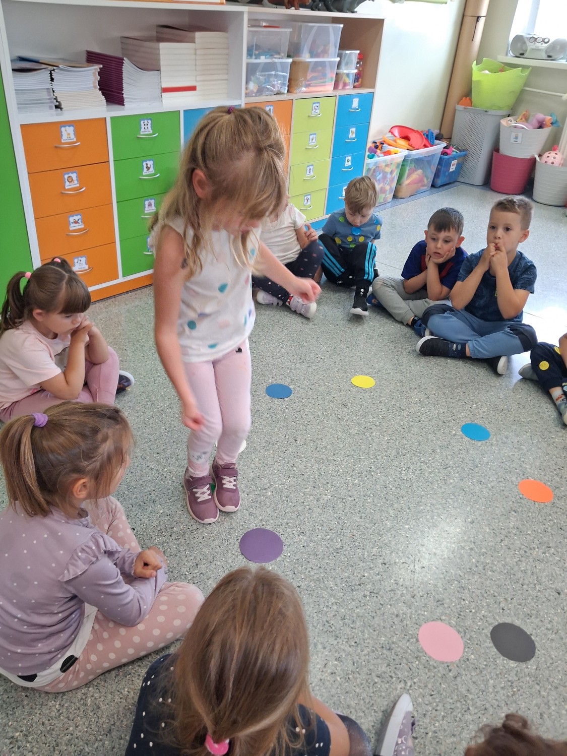 Jak co roku o tej samej porze na dzień 15.09. przypada Dzień Kropki. W tym dniu grupa przedszkolna 0b bawiła się w detektywów odnajdując zagubione Kropki, dzieci bawiły się kolorami, przeskakiwały i podskakiwały, liczyły, dodawały, odejmowały świetnie się przy tym bawiąc.