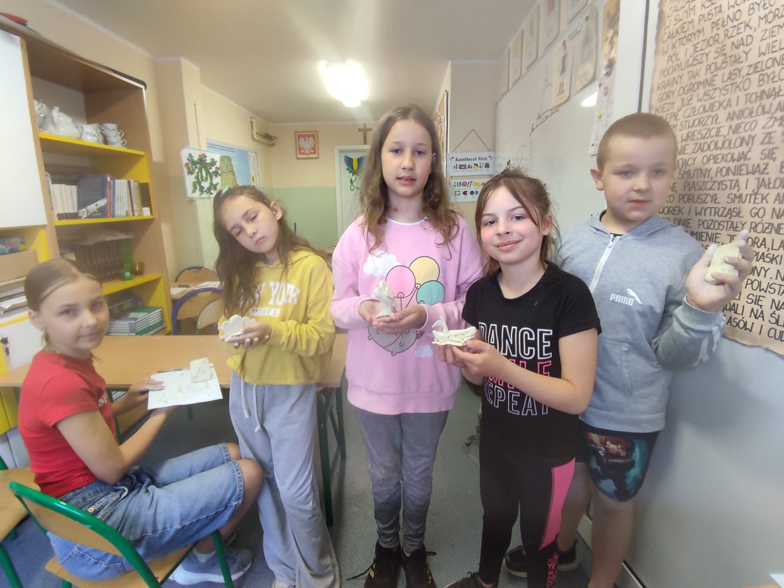 Z tej okazji uczniowie naszej szkoły podczas lekcji języka kaszubskiego przygotowali dla swoich tatusiów wyjątkowe upominki. Pod okiem nauczyciela wykonali piękne prace z gliny, stworzone według własnych pomysłów.