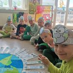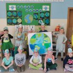 21 kwietnia grupa 0c obchodziła Dzień Ziemi. Od rana dzieci wkraczały do sali w doskonałych nastrojach i zielonych strojach 🙂 Już przez cały poprzedni tydzień przybliżaliśmy tematykę ekologii, wymyślaliśmy sposoby w jaki możemy dbać o Ziemię, a piątek był zwieńczeniem naszych rozmów i działań.
