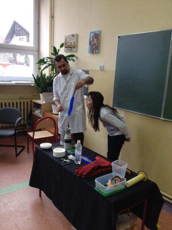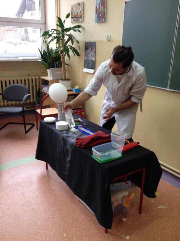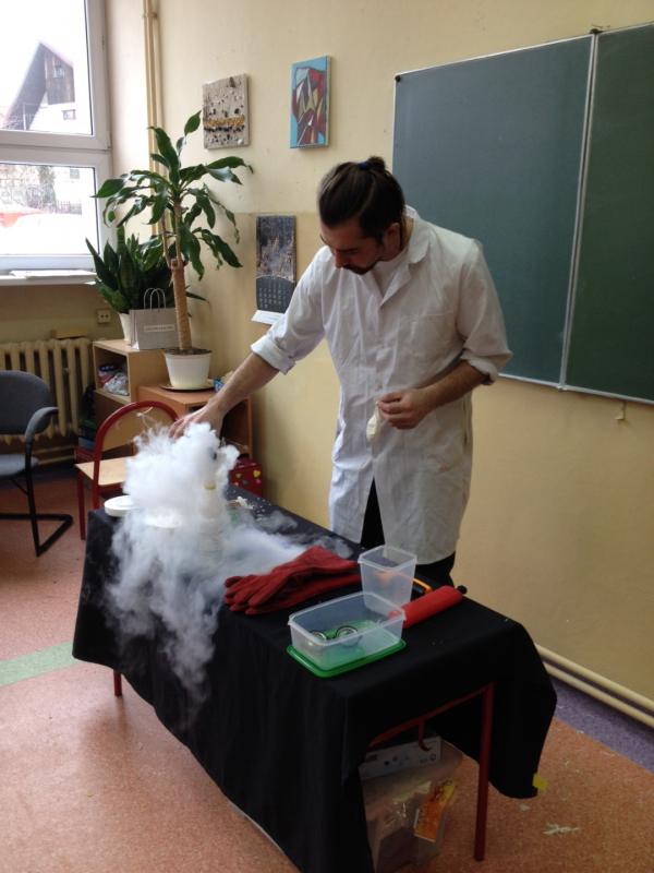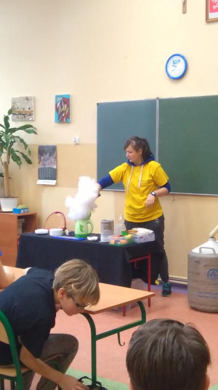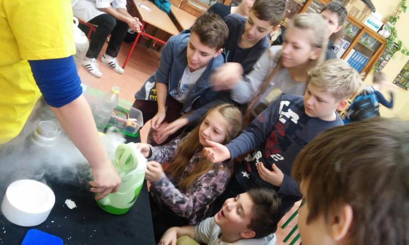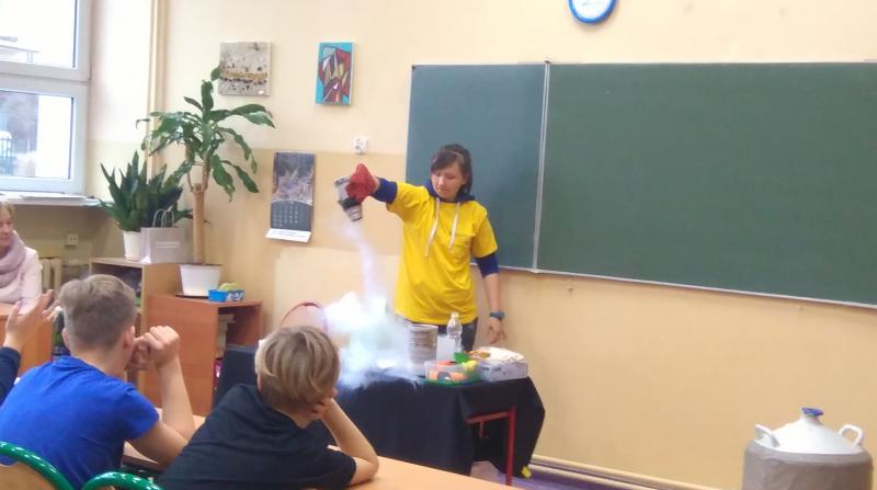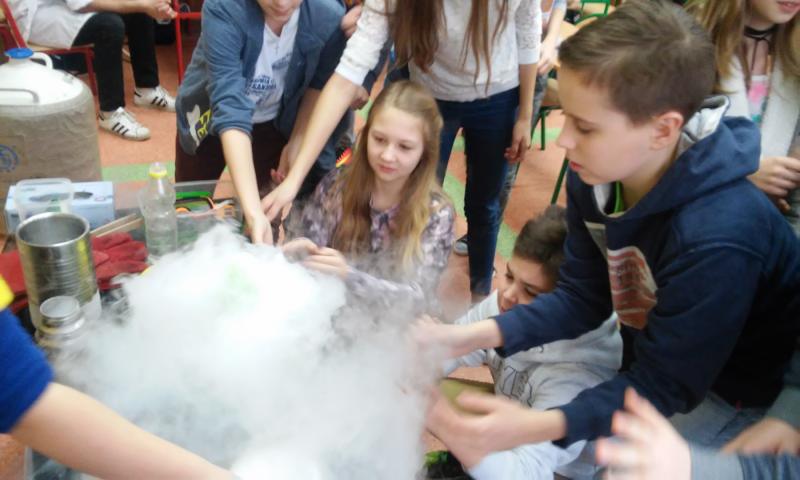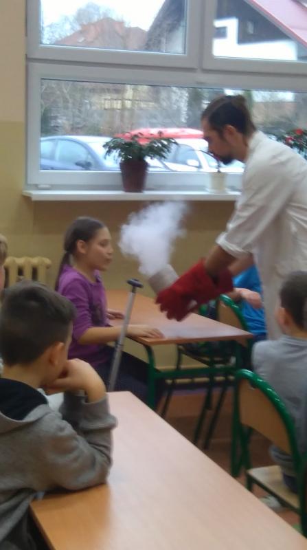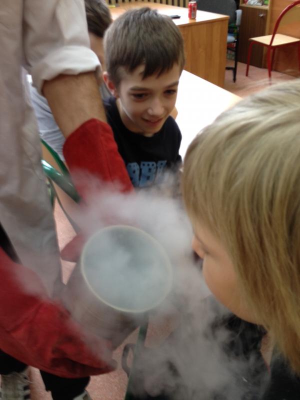 W poniedziałek, 20.02.2017r uczniowie z klas: IVA, IVC, VA, VIA i VID uczestniczyli w zajęciach edukacyjnych pt: „Jak zimny jest ciekły azot?” Dzieci brały udział w pokazie z wykorzystaniem ciekłego azotu i naczynia dewara!