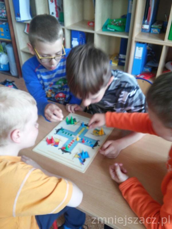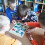 W maju zaś nasza sala lekcyjna zmieniła się w zaczarowaną salę gier planszowych i układanek. Była to lekcja trudnej sztuki wygrywania i jeszcze trudniejszej, przegrywania. Nauka zasad komunikacji oraz kontrolowania emocji. Zabawa byłą wspaniała, co widać na zdjęciach.