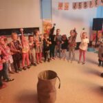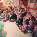 13 października w oddziale przedszkolnym zagościł Gwiezdny Teatr z pokazem „Zaginiony świat”. Była to doskonale opracowana, pełna niesamowitych filmów, dźwięków, efektów świetlnych lekcja o pradawnym świecie, w którym żyły dinozaury. Taka oprawa całkowicie zaskoczyła dzieci, które z zachwytem wpatrywały się w ekran i wsłuchiwały się w głos lektora.
