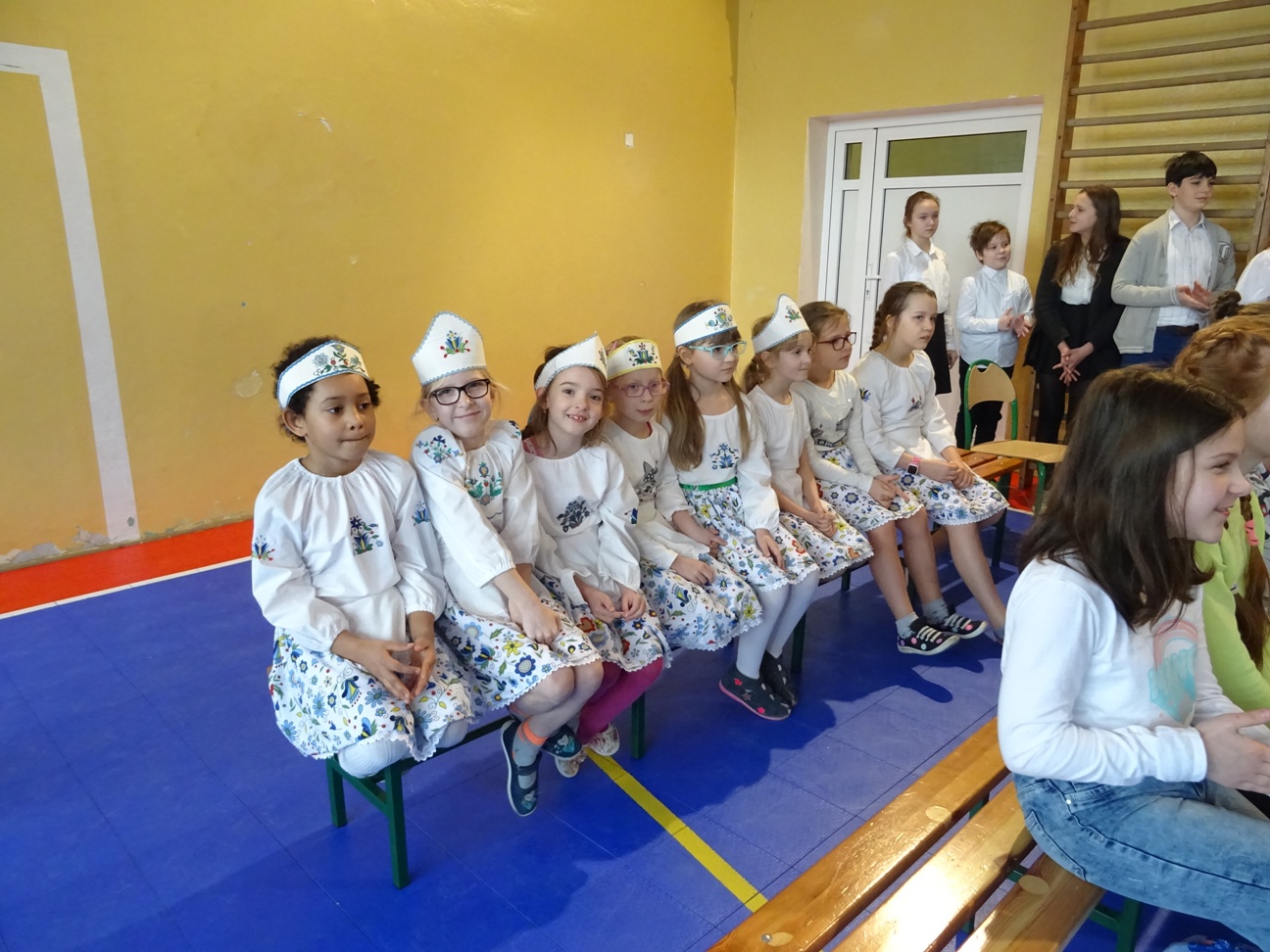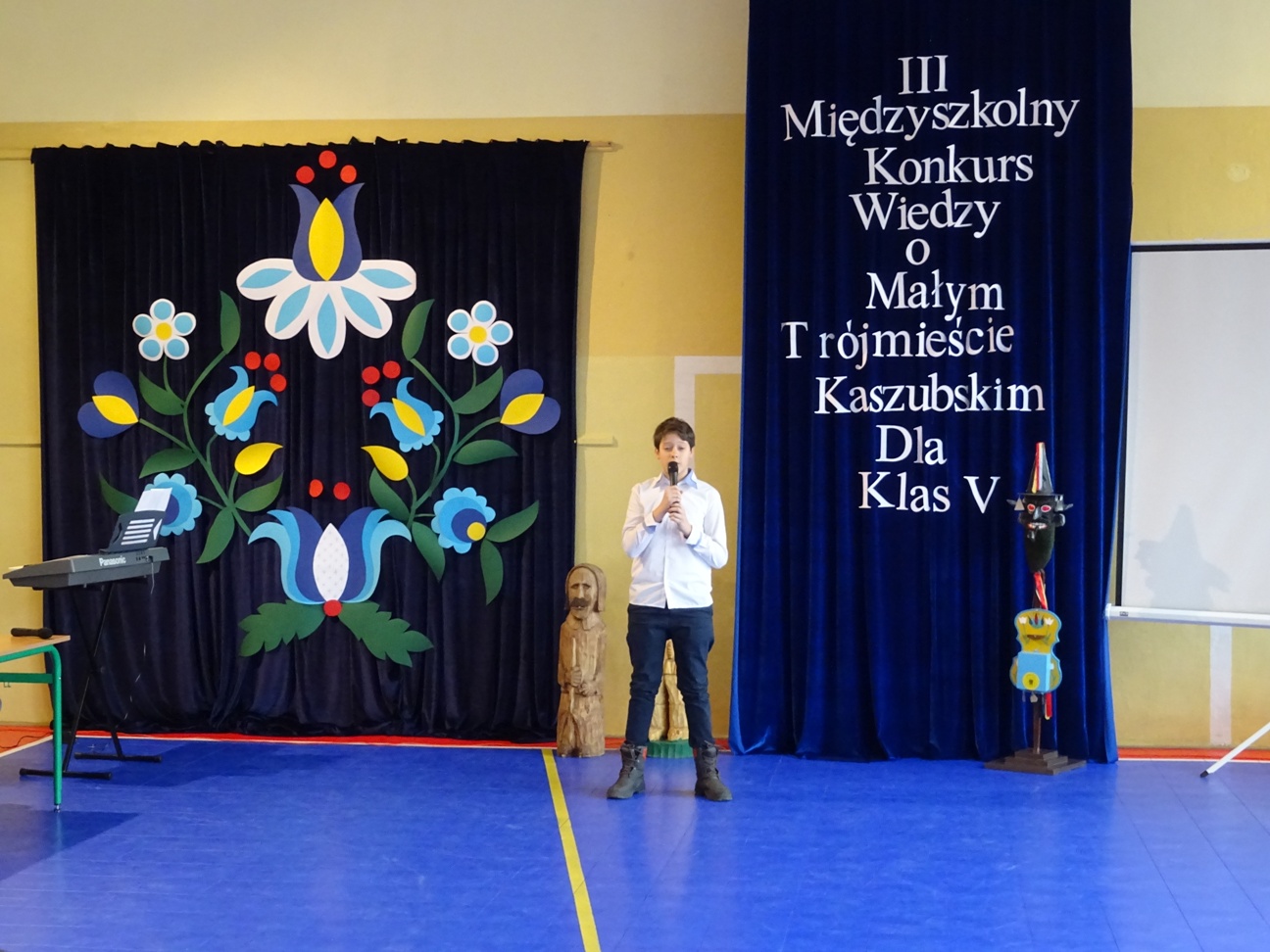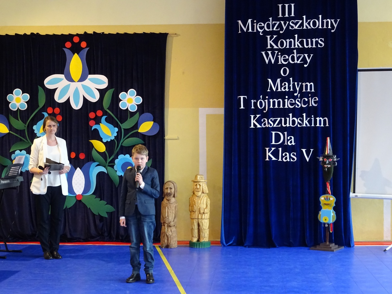 Po przywitaniu uczestników i wszystkich gości przez p. Dyrektor Iwonę Nowicką oraz przemówieniu i życzeniach powodzenia złożonych przez Burmistrza Redy, p. Krzysztofa Krzemińskiego, obejrzeliśmy krótki występ artystyczny. Zaprezentował się w nim szkolny zespół tańców regionalnych pod kierunkiem p. Moniki Mróz oraz szkolny zespół wokalny przygotowany przez p. Barbarę Tańską.