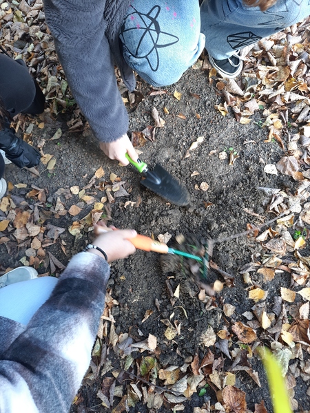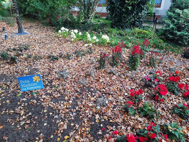 Następnie, wraz z uczniami z Chłapowa i Połczyna, nasi wolontariusze połączyli siły w grze terenowej na obszarze Ogrodu Marzeń. Jest to piękne miejsce, w którym podopieczni mogą miło spędzać czas na świeżym powietrzu, wśród zieleni i śpiewu ptaków. Gra terenowa zawierała siedem wskazówek, które zaprowadziły uczestników do cebulek kwiatowych. Cebulki te zostały posadzone na terenie ogrodu, by już na wiosnę mogły cieszyć podopiecznych i ozdobić pas zieleni. Na zakończenie wspólnego spotkania na wszystkich uczestników czekało ognisko i poczęstunek.