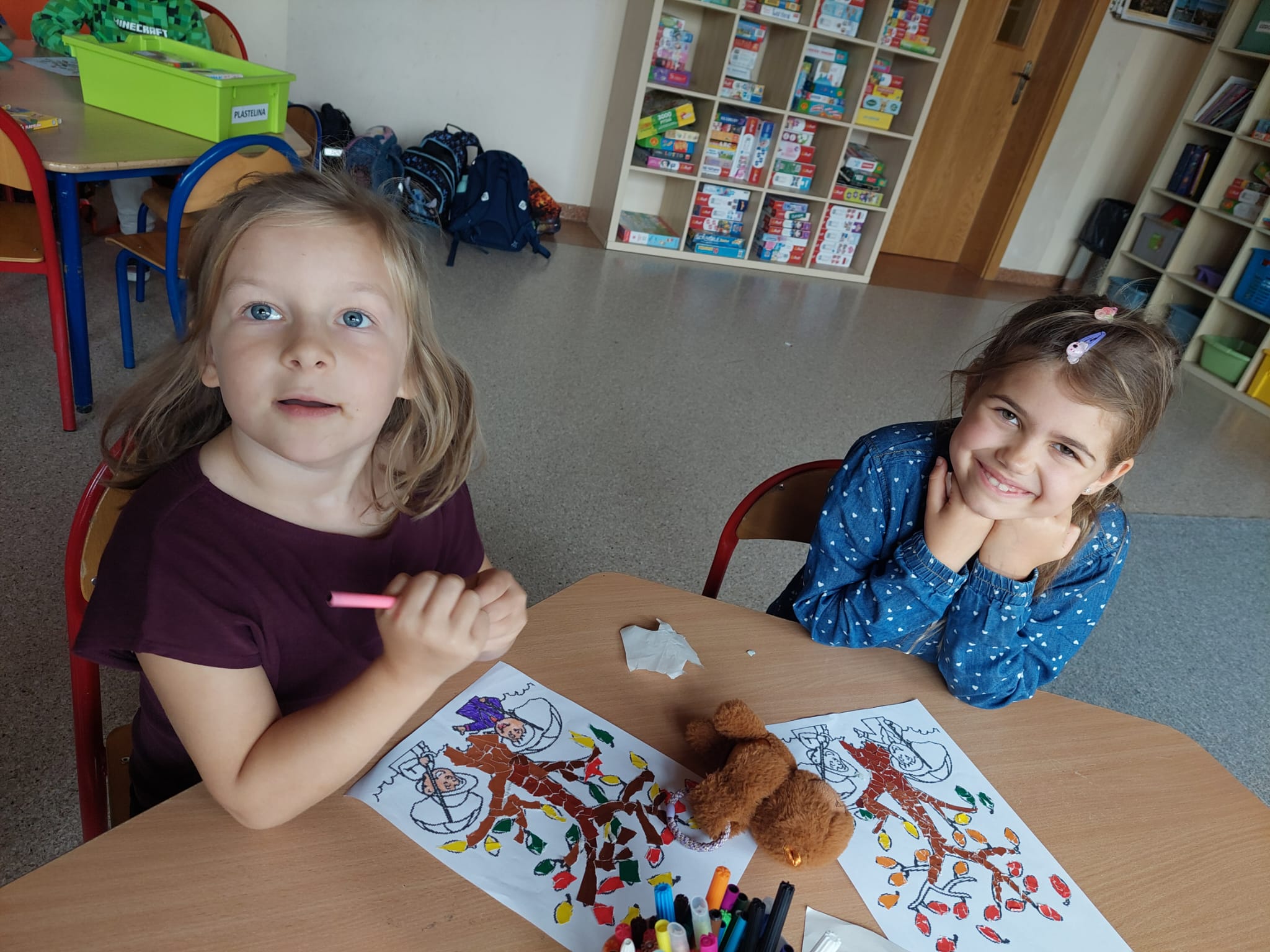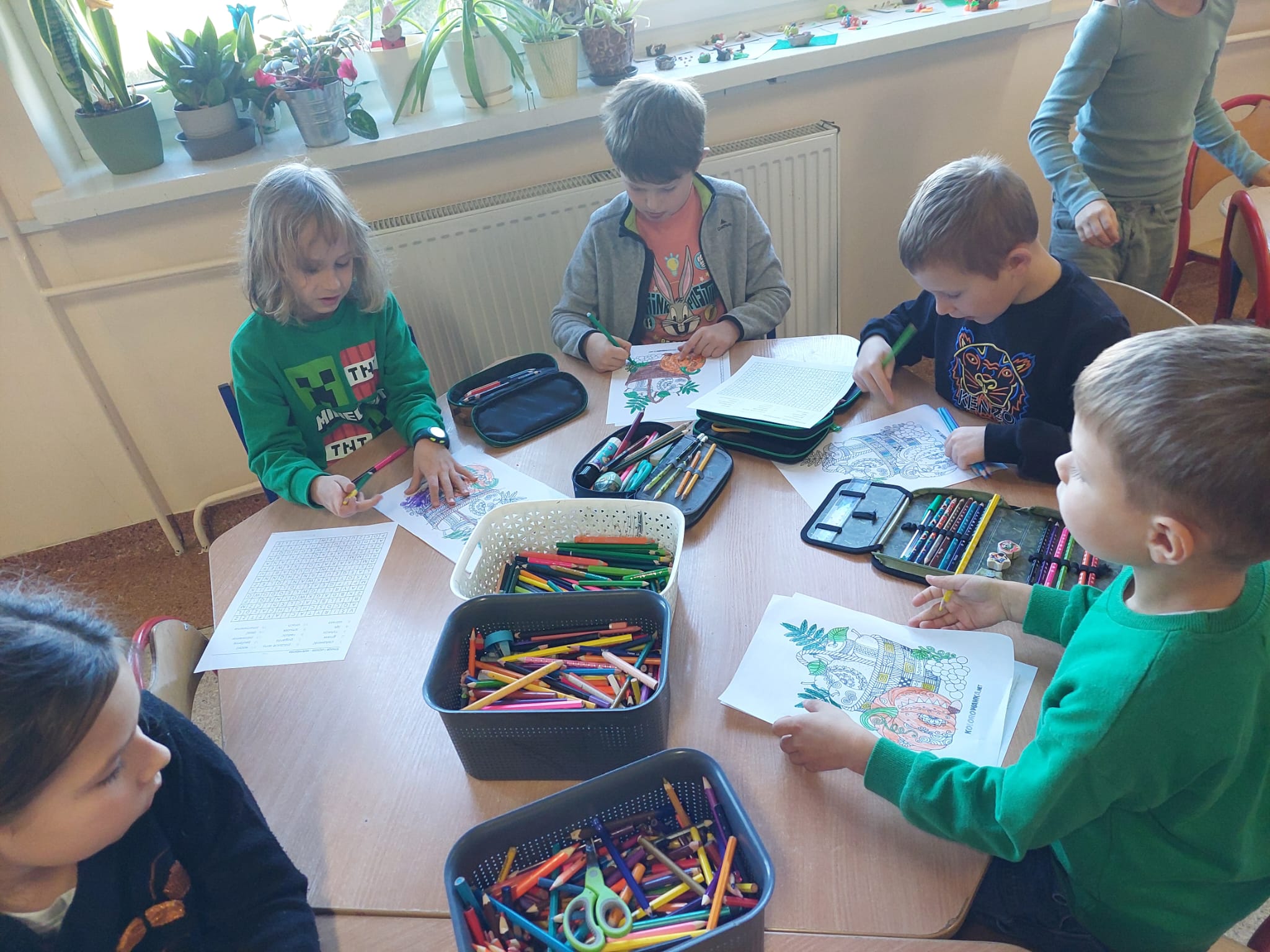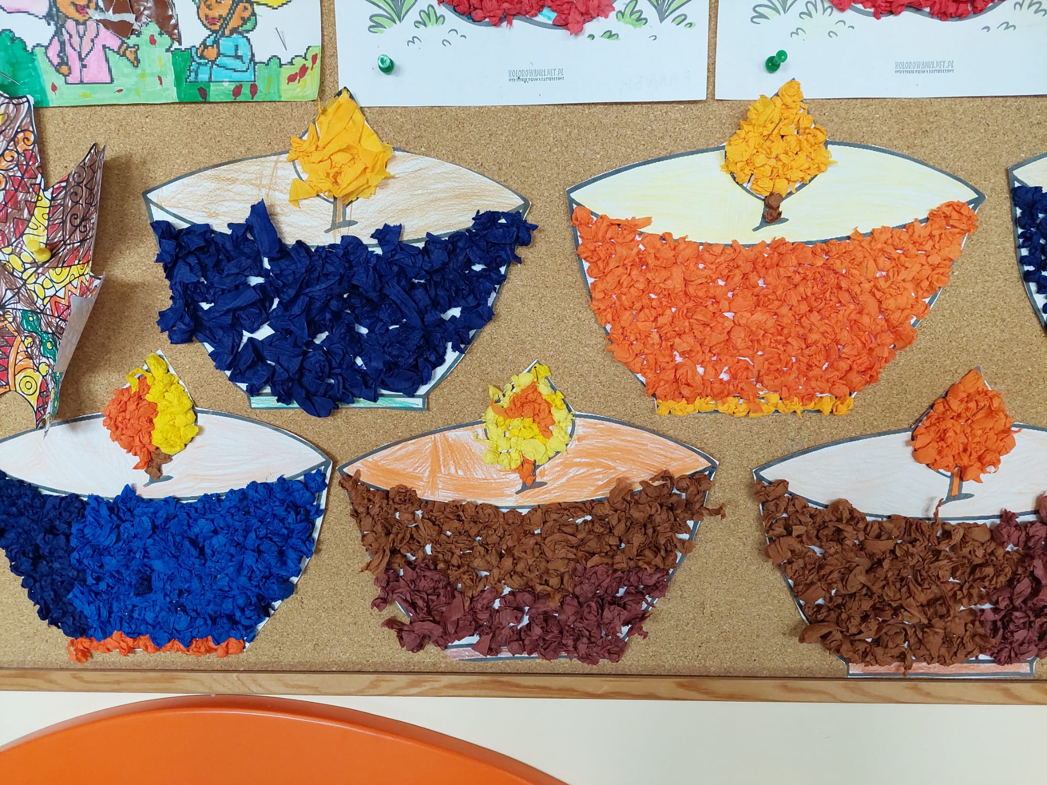 JESIEŃ w świetlicy zagościła na dobre. Dzieci rozmawiały o oznakach jesieni, poznawały jesienne kolory i zmiany zachodzące w przyrodzie. Wykonały prace plastyczne z kolorowych liści oraz bibuły, przedstawiające jesienny krajobraz. Uczniowie byli aktywni i z zaangażowaniem brali udział w zajęciach.