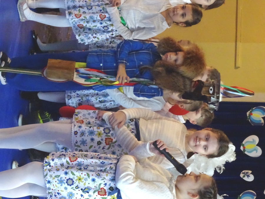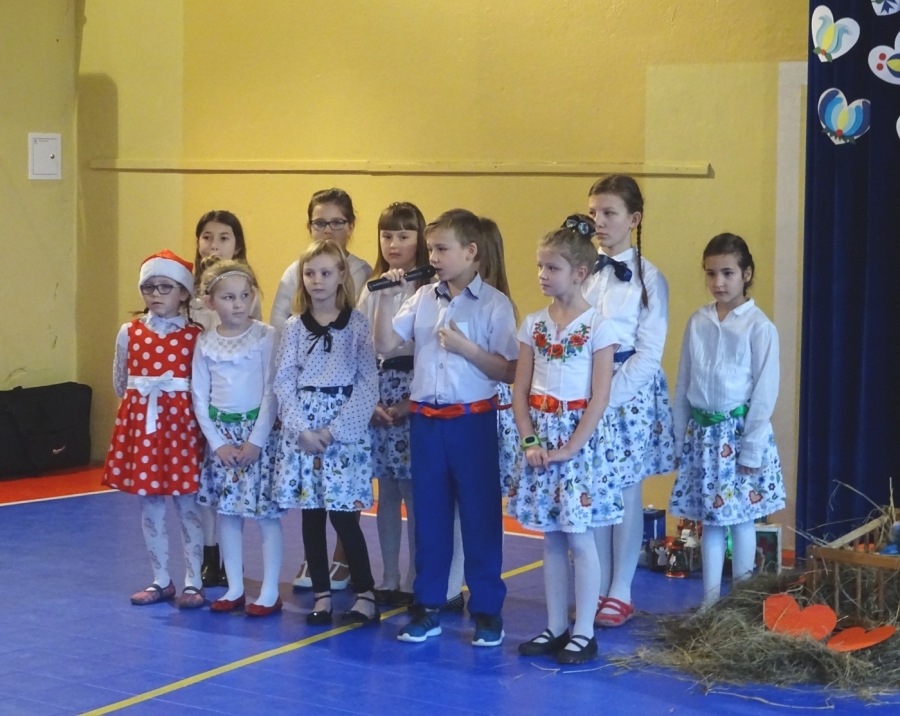 Całość wydarzenia uświetniał występ szkolnego chóru pani Barbary Tańskiej, a sam występ został przygotowany przez panie: Kamilę Czapiewską i Annę Jankowską. Wszyscy uczniowie wykazali się nienaganną wymową i opanowaniem tekstu, Jasełka były kolejnym małym sukcesem w nauce naszego regionalnego języka.