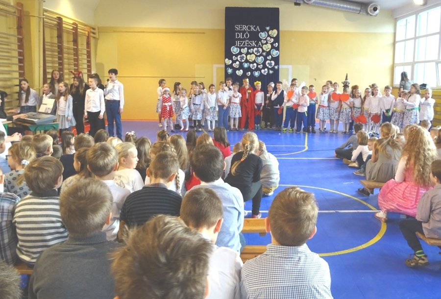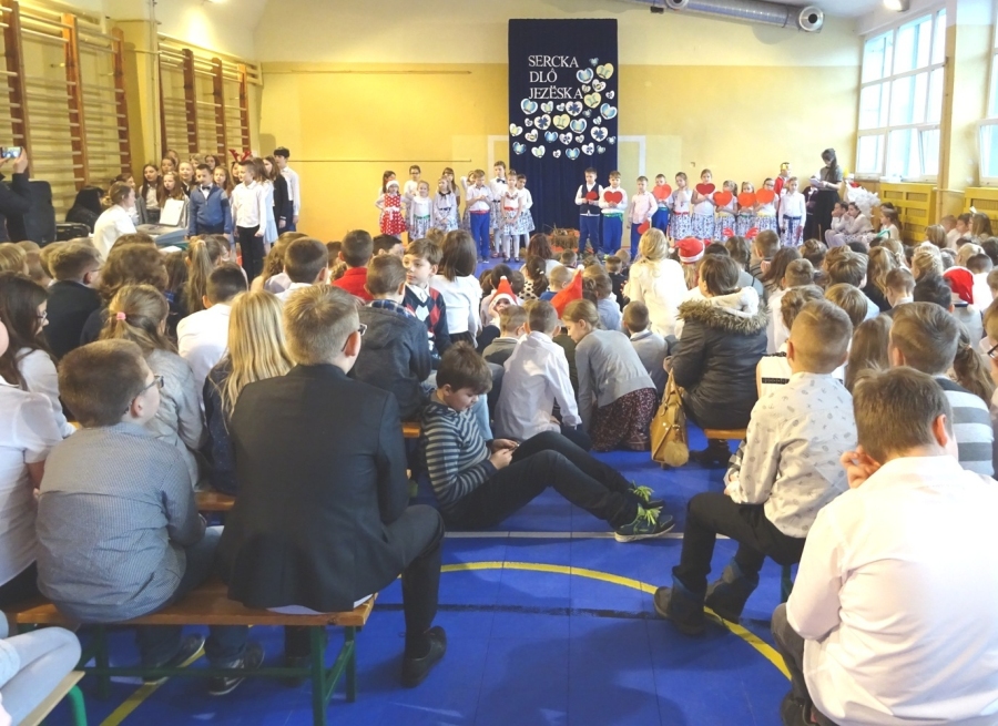 Mała sala gimnastyczna, na której odbył się występ, oprócz uczniów i nauczycieli, zebrała grono rodziców i dziadków, chcących zobaczyć swoje pociechy podczas występu. Inscenizacja nosiła nazwę „Sercka dlô Jezëska” i opowiadała o tym jak dzieci chciałyby chronić Jezusa przed Herodem i dać mu swoje gorące kaszubskie serca.