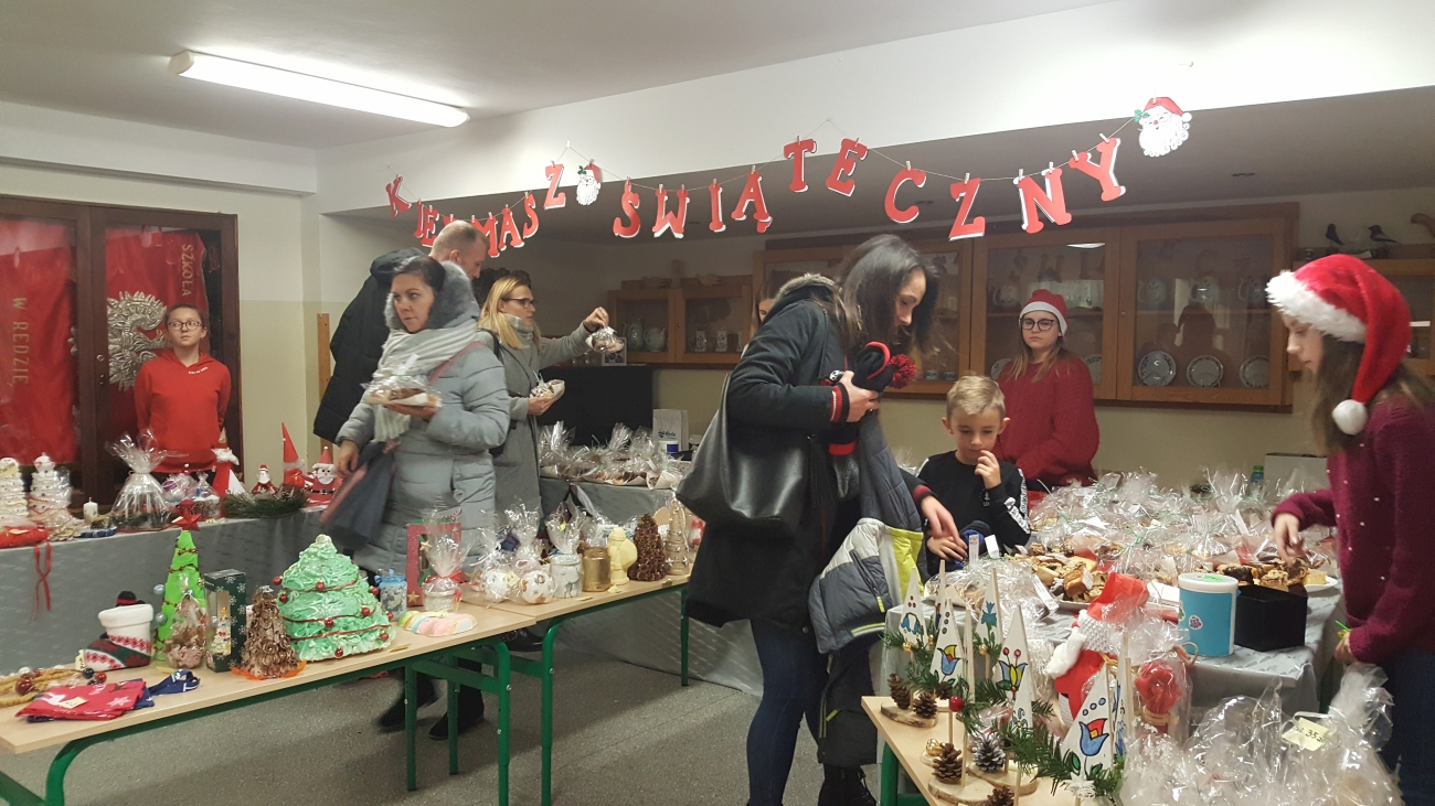 We wtorek 10.12.2019r. odbył się Szkolny Kiermasz Świąteczny. Od rana panował świąteczny nastrój i miły klimat. Dzieci chętnie zaangażowały się do udziału przez obsługę i sprzedaż świątecznych ozdób i ciast. Nie brakowało małych i dużych klientów.