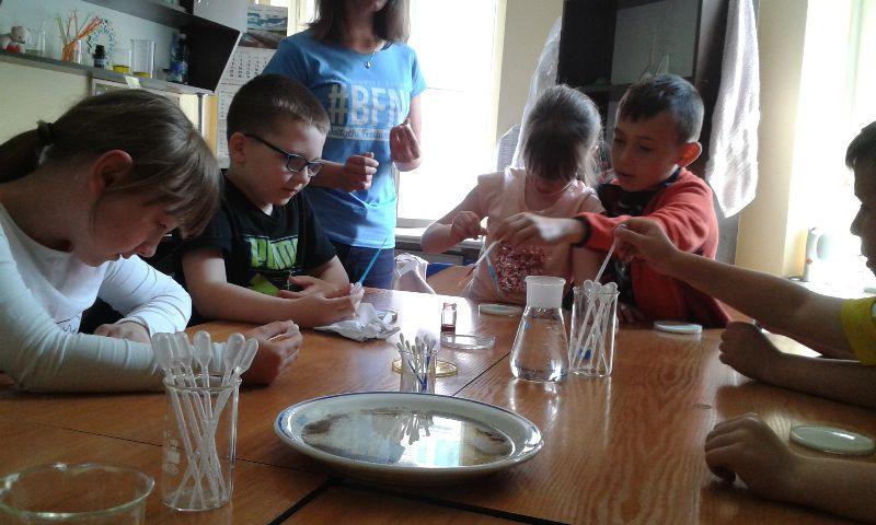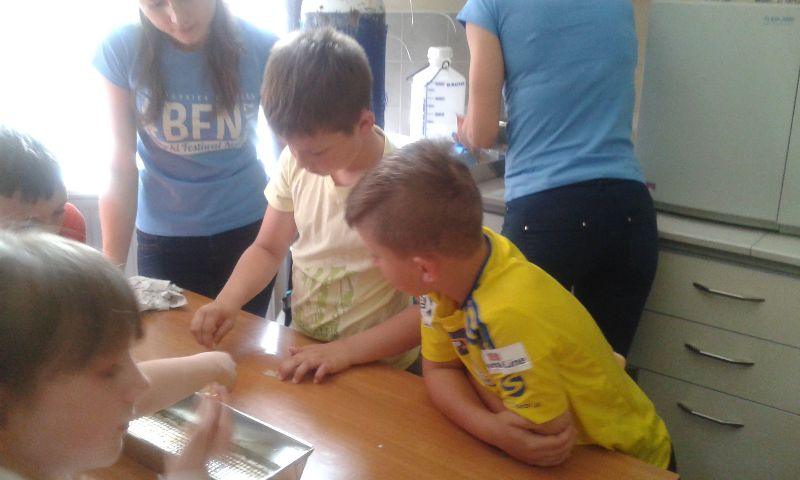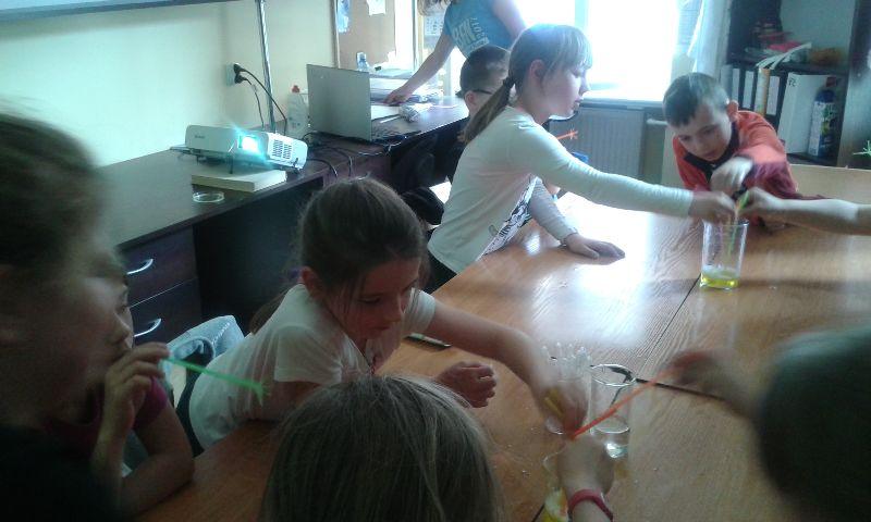 Bawiliśmy się napięciem powierzchniowym w trakcie pokazu hydrozagadek. Na warsztatach, odbywających się pod hasłem ,,Ulepimy bałwana? Tak, zrobimy kolorowy śnieg! Przyjrzeliśmy się z bliska tworzywom sztucznym wykonanym ze źródeł odnawialnych. Obejrzeliśmy owoce i warzywa pod mikroskopem. Rozpoznawaliśmy zapachy za pomocą elektronicznego nosa. Mieliśmy też okazję zobaczyć jak przebiega rozdział barwników roślinnych. Jednak najwięcej emocji wzbudziły pokazy efektownych reakcji chemicznych. Pirotechniczne pokazy nie tylko nas zaskoczyły, ale na długo pozostaną w naszej pamięci. Na zakończenie otrzymaliśmy certyfikat małego inżyniera.