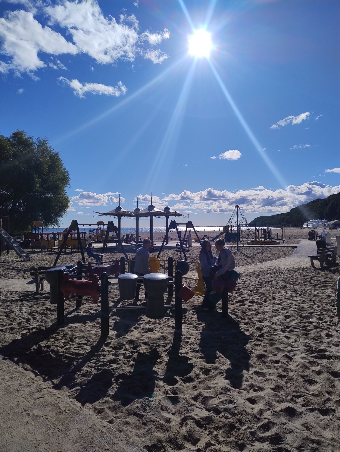Po tej dawce informacji historycznych udaliśmy się na plażę. Pogoda dopisała, więc uczniowie spędzili czas na placu zabaw. To był bardzo udany wspólny czas.