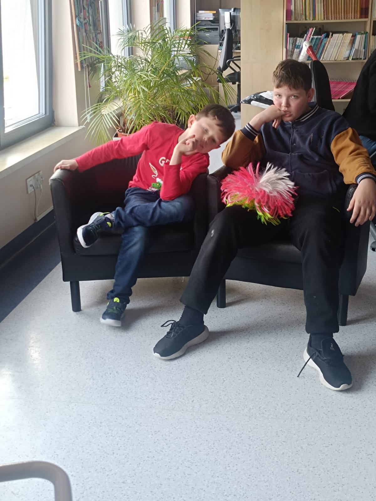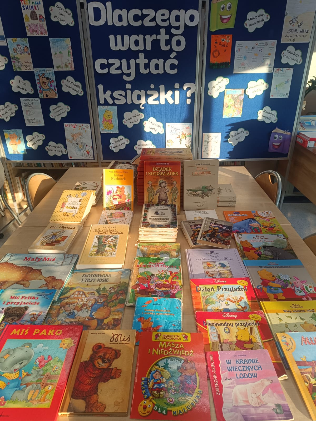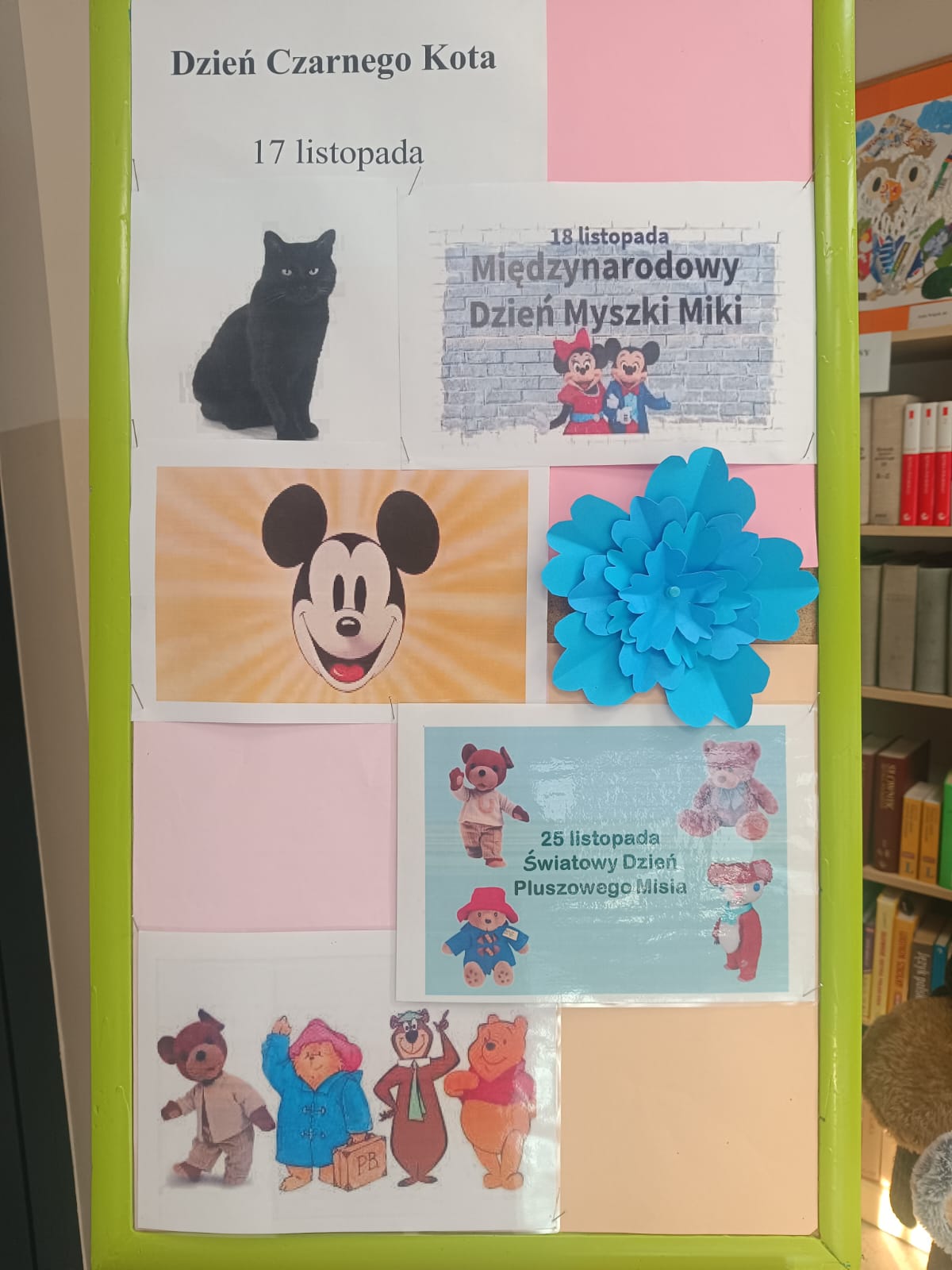 Poza tą atrakcją z okazji w/w świąt, podczas przerw lekcyjnych, w bibliotece wyświetlane były filmy o misiach i Myszce Miki,przygotowana została również wystawa książek o tematyce związanej z obchodzonymi świętami.