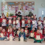 Kolejnym wydarzeniem był teatrzyk – scenka mikołajkowa wystawiana w szkolnej bibliotece przez młodzież z klas siódmych. Oprócz tego dzieci przygotowały pracę plastyczną, której bohaterem był Mikołaj wdrapujący się przez komin do domu. Dzieci robiły sobie również zdjęcia w specjalnie przygotowanej na tę okazję mikołajkowej foto ramce. Wszystkie aktywności przeplecione były zabawami i tańcami. Nie obyło się bez słodkich upominków, które umiliły ten magiczny dzień, a które wręczane były przez naszego grupowego skrzata- Panią Sabinkę. Dzieci zmęczone ale szczęśliwe rozchodziły się do domów pełne wrażeń i z uśmiechem na ustach.