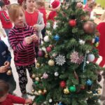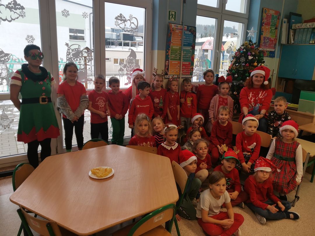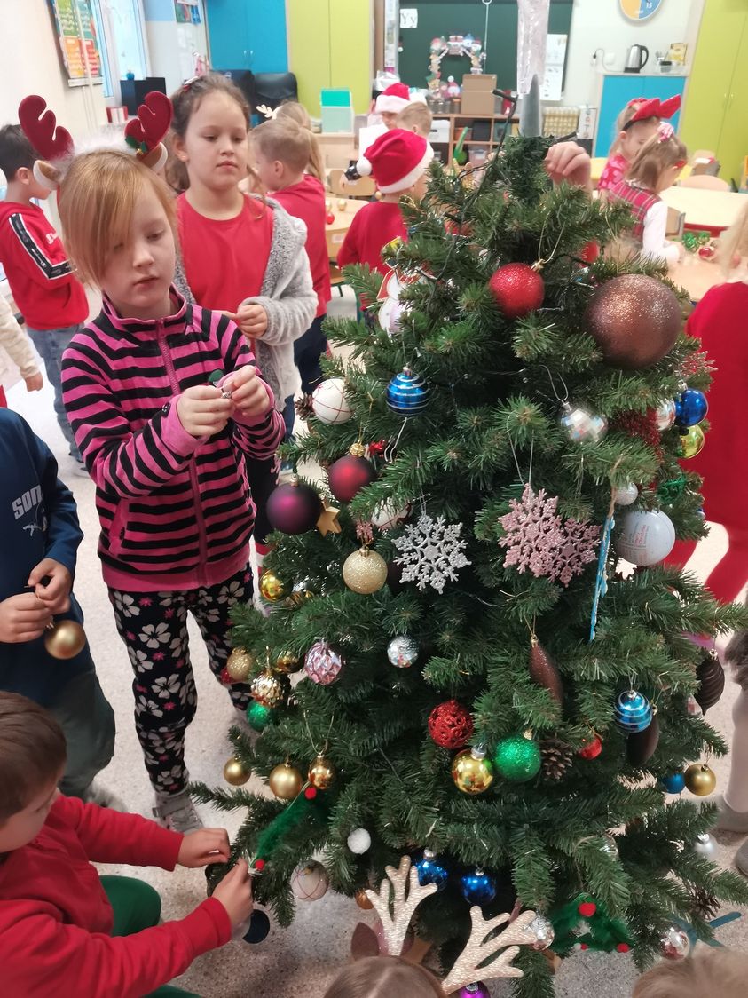 Mikołajki w oddziałach przedszkolnych to szczególny dzień. Grupa 0a przygotowała się do niego odpowiednio. Czerwone stroje, akcesoria związane z Mikołajem, reniferami, elfami/ skrzatami królowały dzisiaj w sali 27. Świętowanie rozpoczęto od wystrojenia choinki, która stanęła w naszej sali i czekała na lamki, bombki oraz łańcuchy, którymi dzieci bogato i ochoczo ją przystroiły. Następnie cała grupa przypomniała sobie historię prawdziwego Mikołaja, biskupa z Miry.