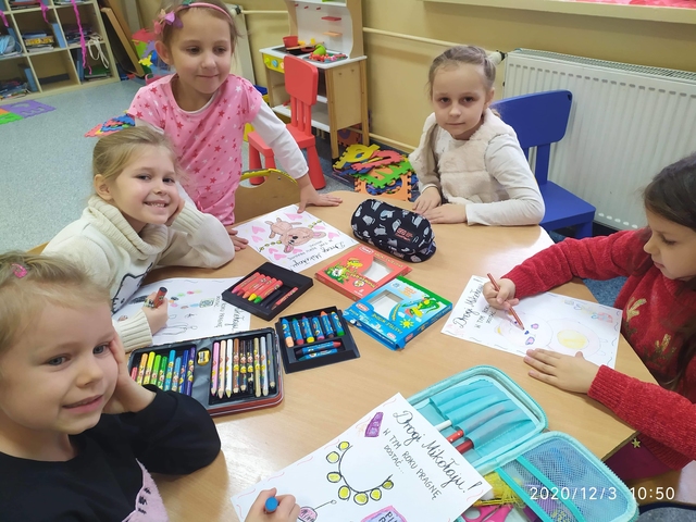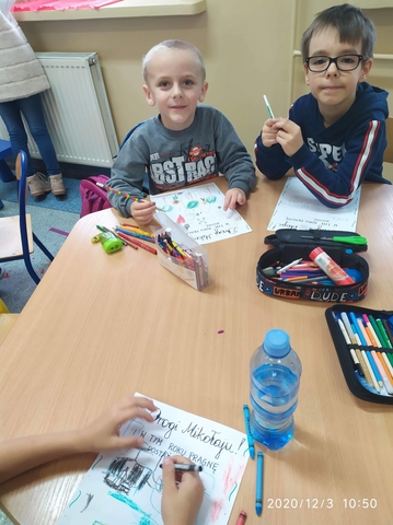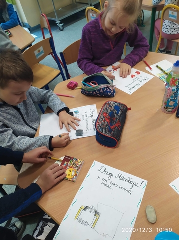 Klasa 0 B, podobnie jak wszystkie dzieci, z niecierpliwością czekała na Świętego Mikołaja. Dzieci pisały listy, które zostawiły w koszyczku dla Mikołaja.