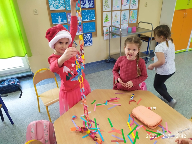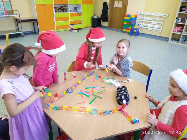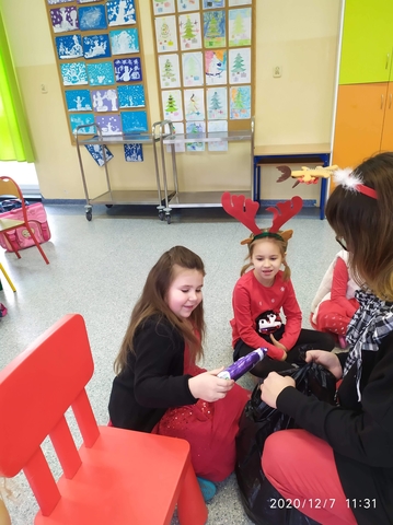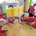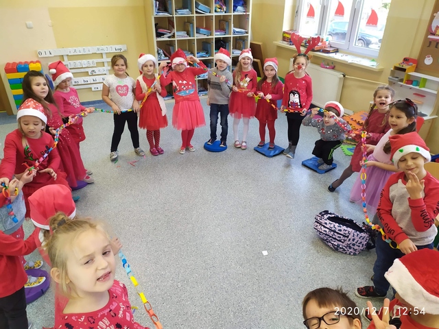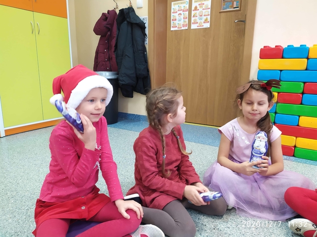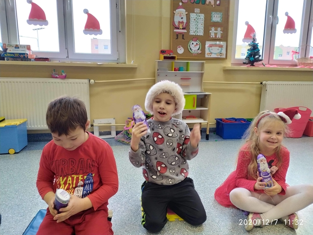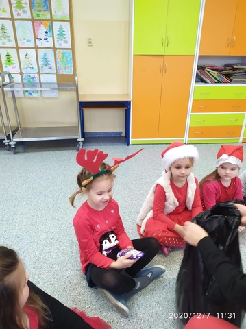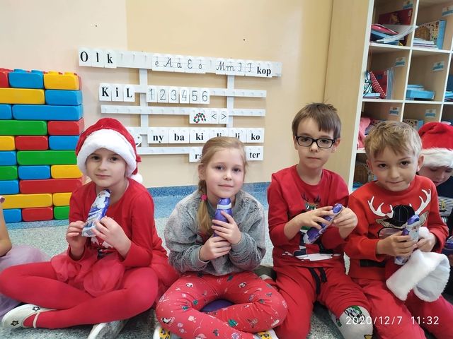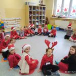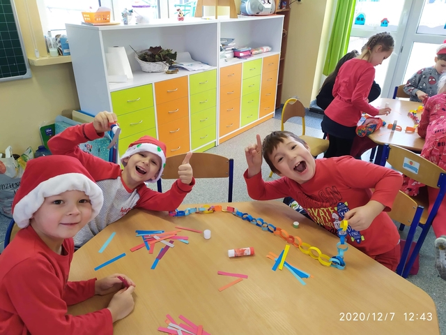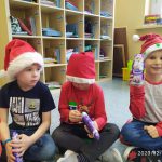 7 grudnia, zamiast  listów Mikołaj zostawił słodkie upominki. Radości nie było końca. Śpiewaliśmy kolędy i świąteczne piosenki. Na zakończenie przedszkolaki wykonały łańcuch choinkowy oraz dodatkowy worek zamiast listów.