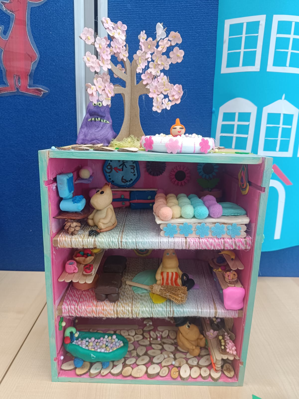 Z okazji 80. rocznicy wydania pierwszej książki o Muminkach biblioteka szkolna w ramach obchodów Tygodnia Bibliotek ogłosiła Konkurs rodzinny na wykonanie domu Muminków.