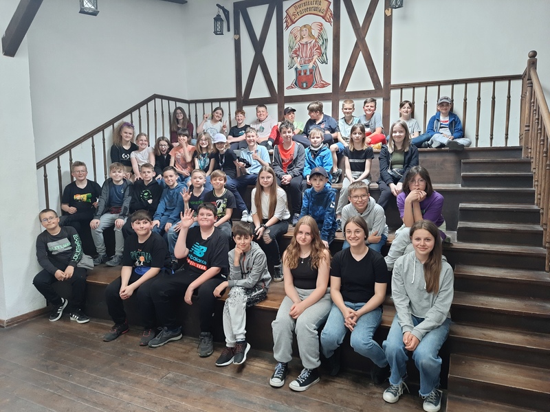 Uczniowie klas: Vb i Vc wraz z opiekunami.