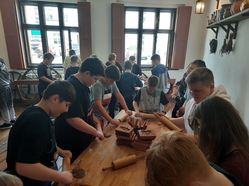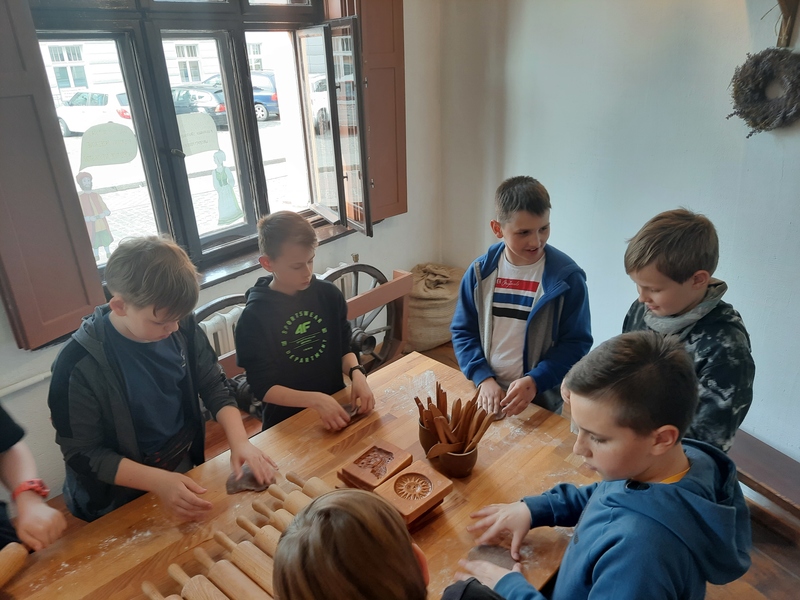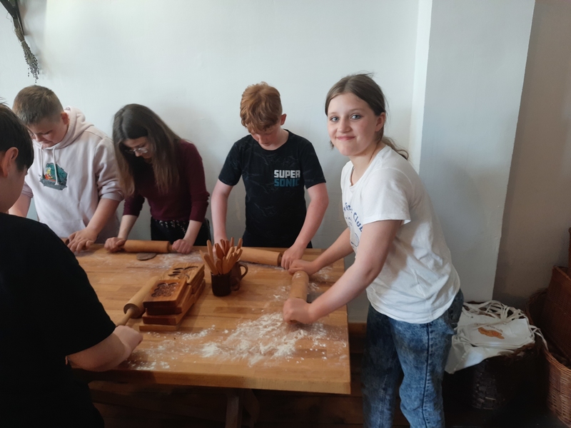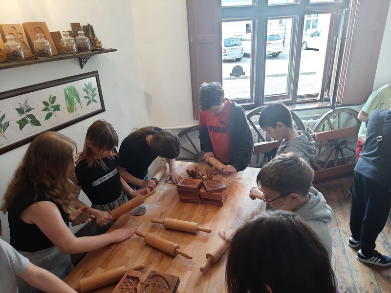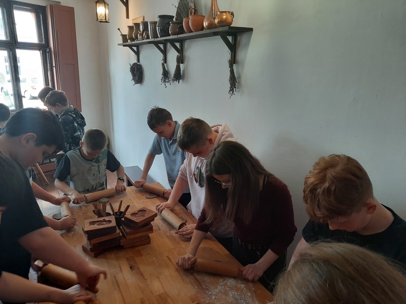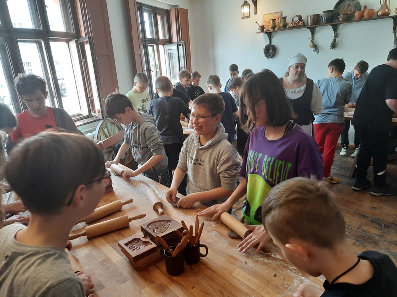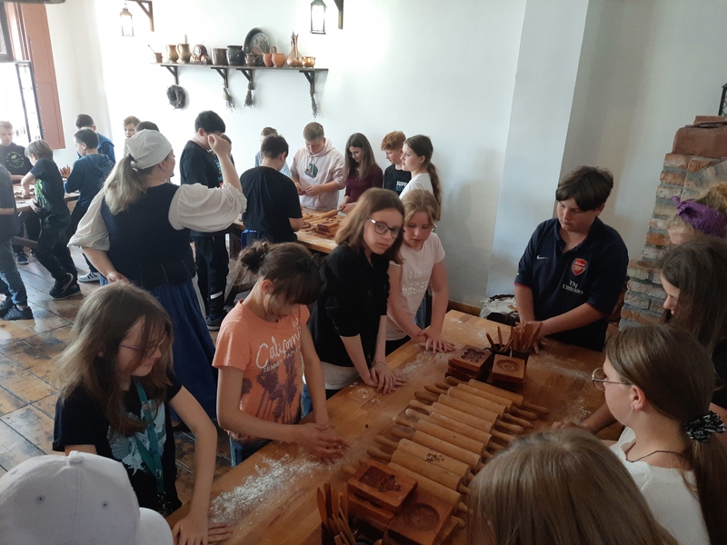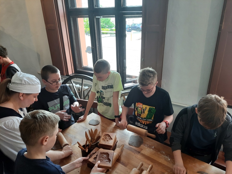 – warsztaty piernikarskie w Piernikarni Starotoruńskiej – uczniowie poznali tajniki wypieku najsłynniejszego toruńskiego smakołyka oraz mieli okazję przygotować własny piernik.