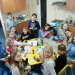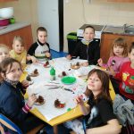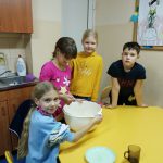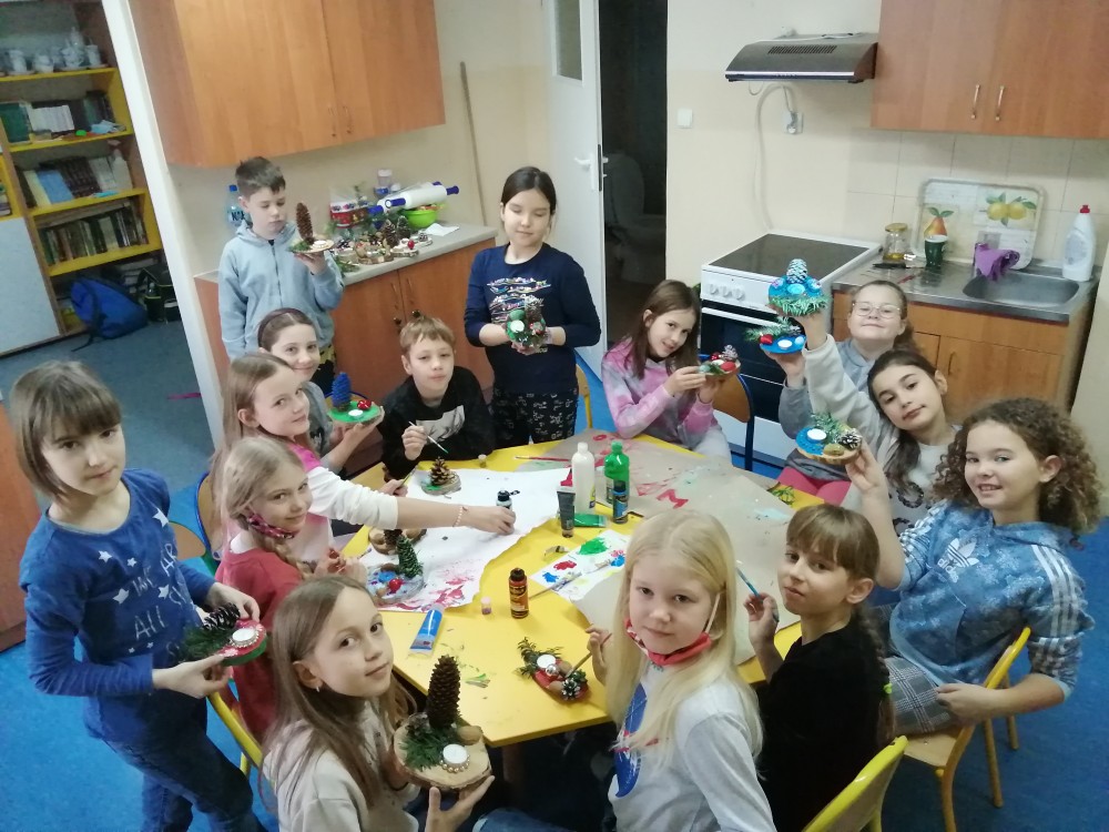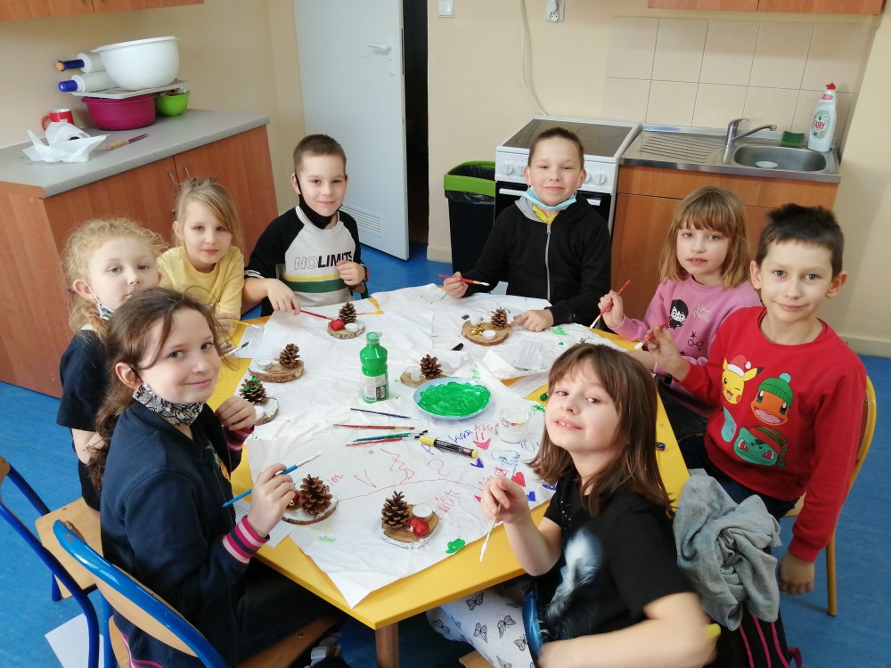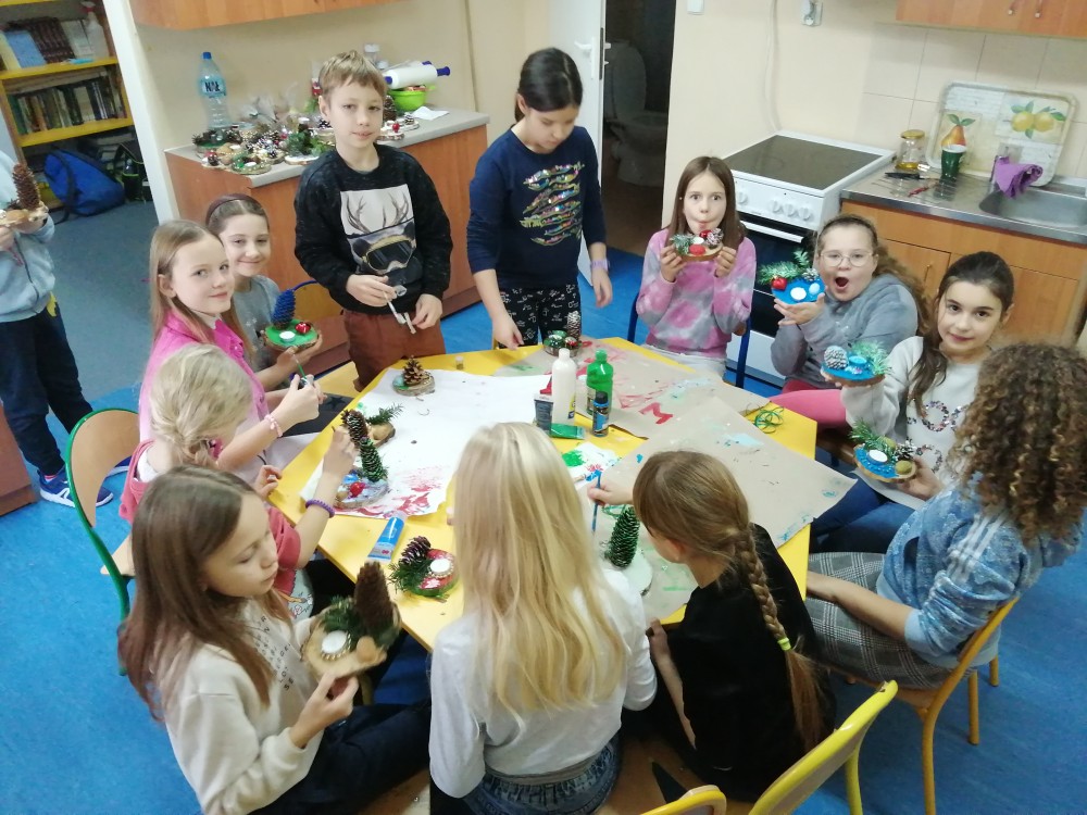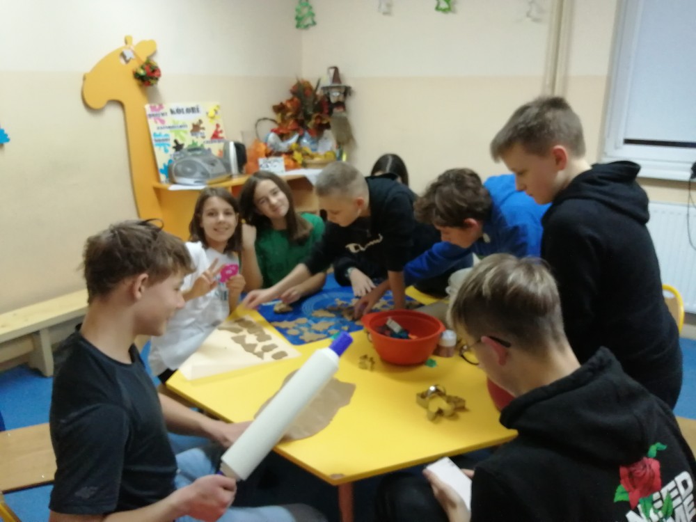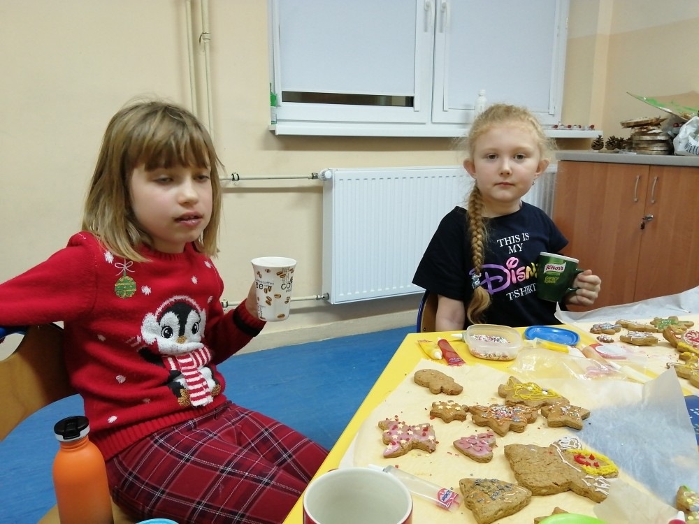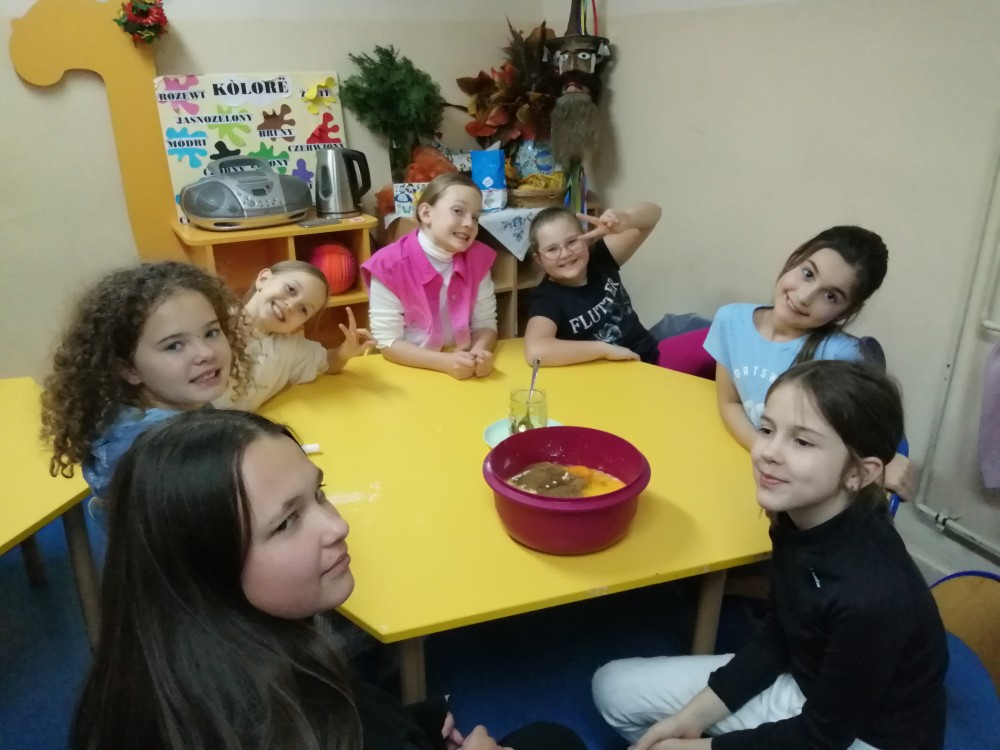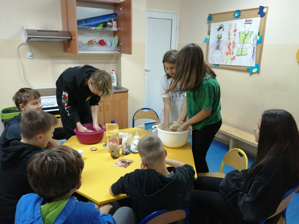Dzieci w ramach zajęć z języka kaszubskiego w grudniu 2021r nocowały w szkole i poznawały kolejne tajniki kaszubskiej kuchni. Tym razem poznały recepturę na pierniki. Uczniowie samodzielnie wykonali ciasto, wyrobili je, wykrawali i zdobili. Pierniczki były przepyszne i wszystkim bardzo smakowały. Wykonaliśmy je z myślą o kiermaszu bożonarodzeniowym, w który się włączyliśmy. Nocowanie w szkole zawsze dzieciom sprawiają wiele radości. Na kiermasz również wykonaliśmy stroiki(świeczniki) na świąteczny stół.