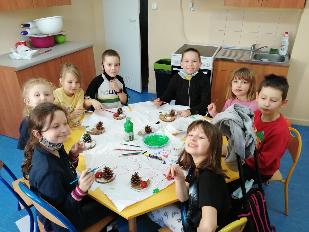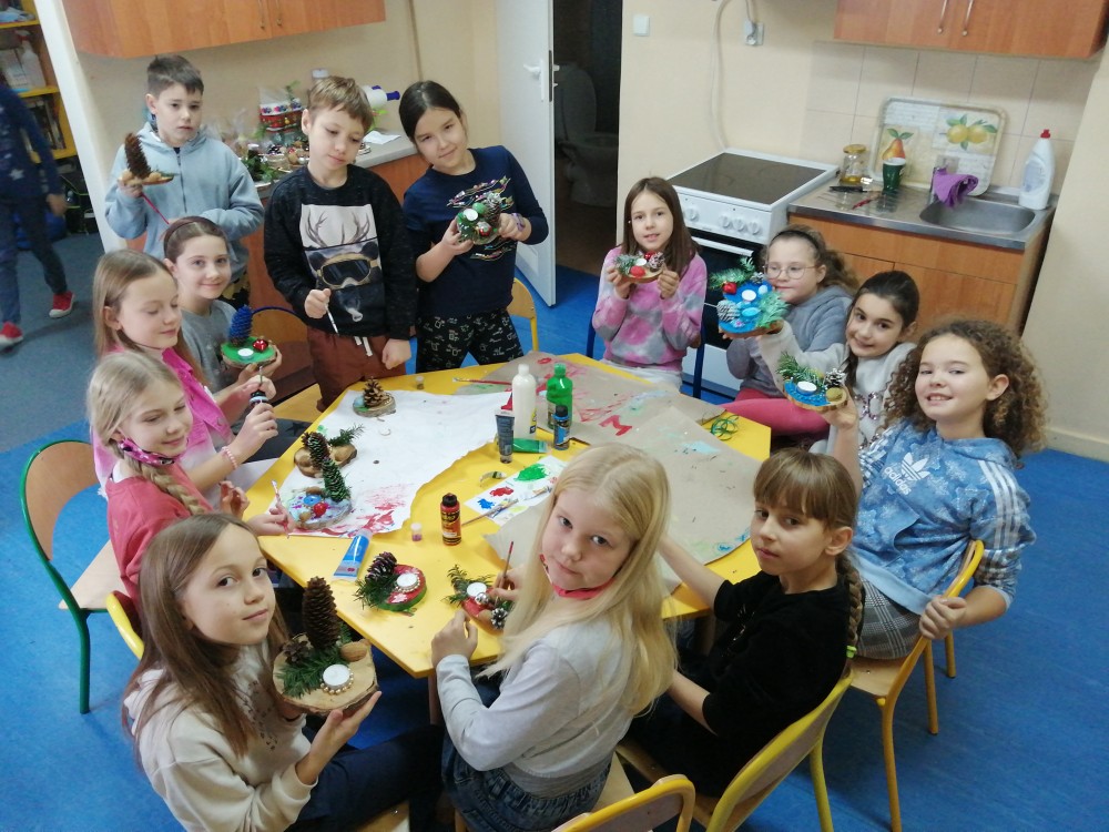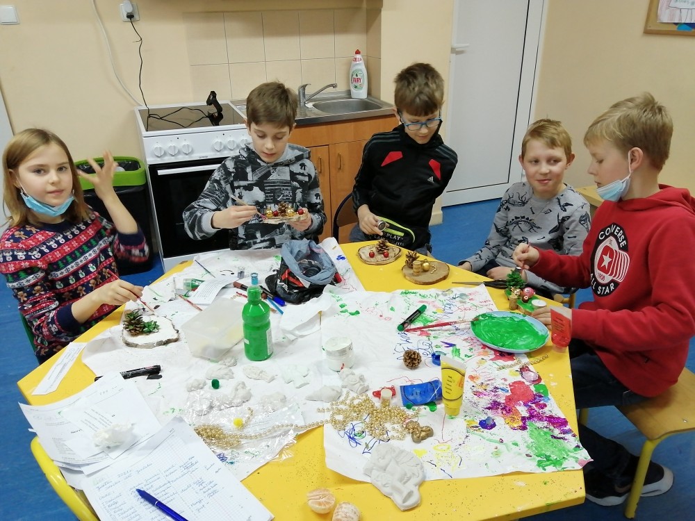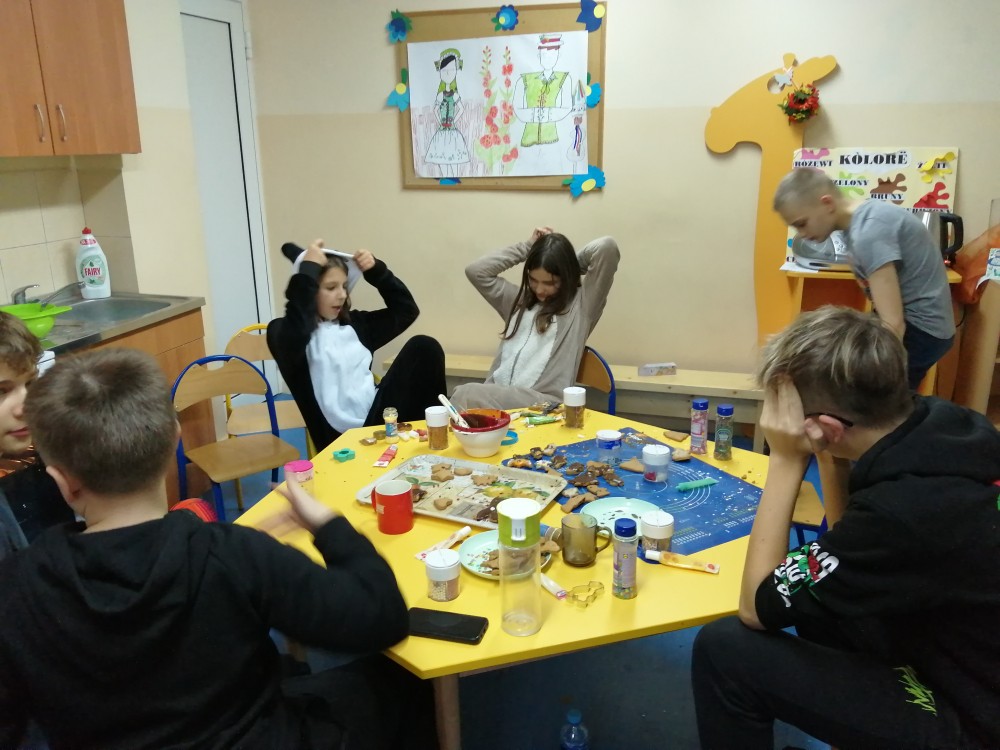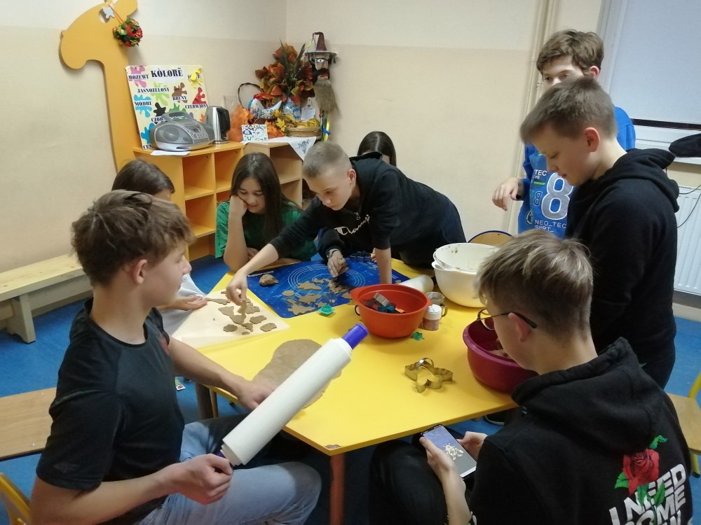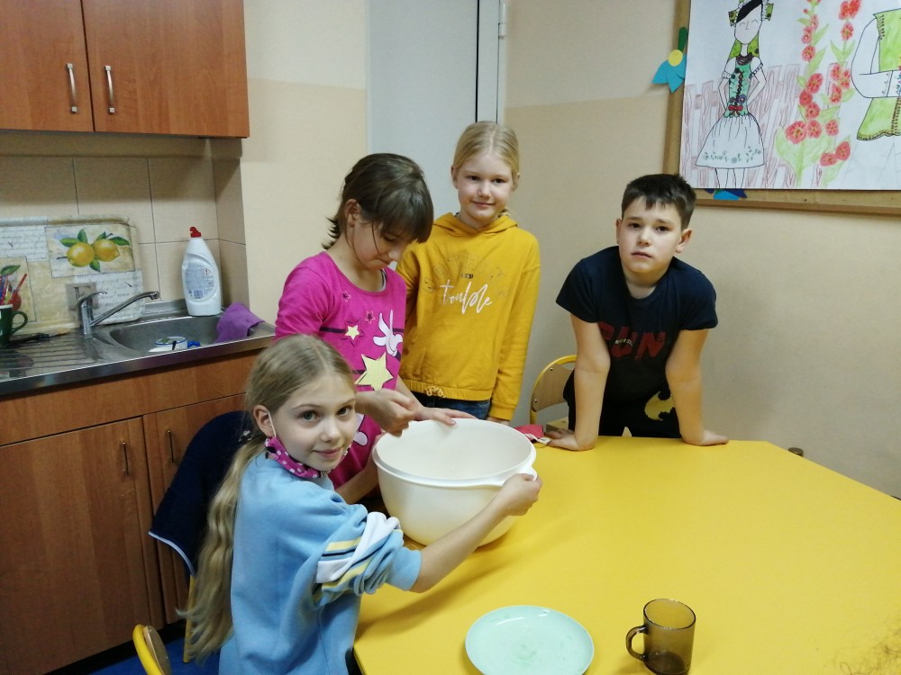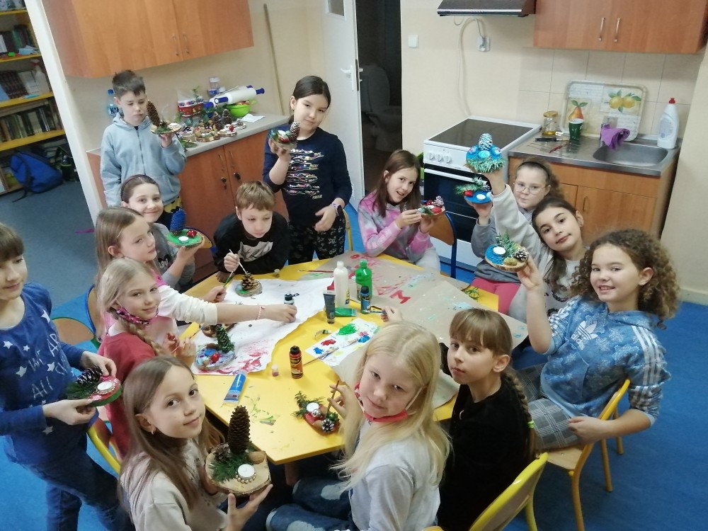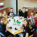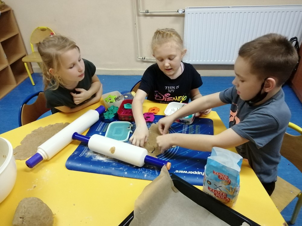 Dzieci w ramach zajęć z języka kaszubskiego w grudniu 2021r nocowały w szkole i poznawały kolejne tajniki kaszubskiej kuchni. Tym razem poznały recepturę na pierniki. Uczniowie samodzielnie wykonali ciasto, wyrobili je, wykrawali i zdobili. Pierniczki były przepyszne i wszystkim bardzo smakowały. Wykonaliśmy je z myślą o kiermaszu bożonarodzeniowym, w który się włączyliśmy. Nocowanie w szkole zawsze dzieciom sprawiają wiele radości. Na kiermasz również wykonaliśmy stroiki(świeczniki) na świąteczny stół.