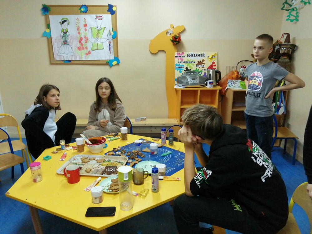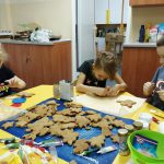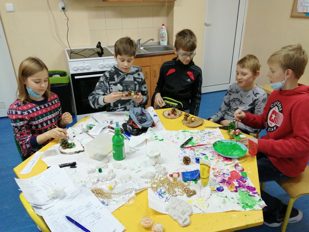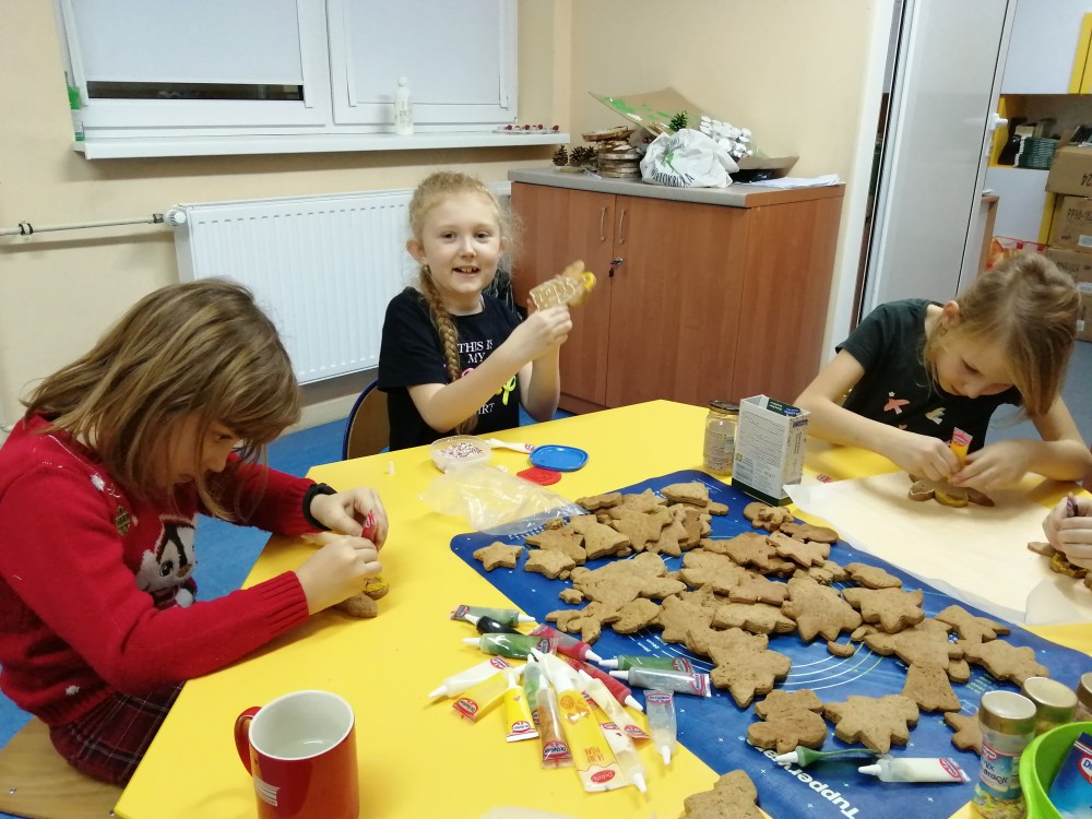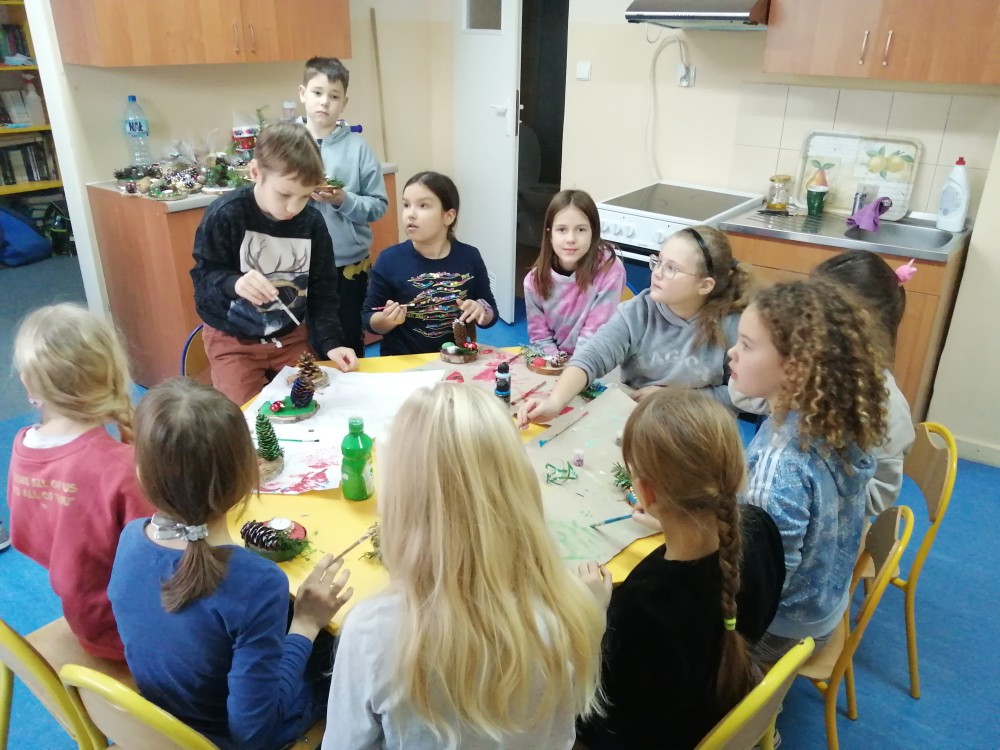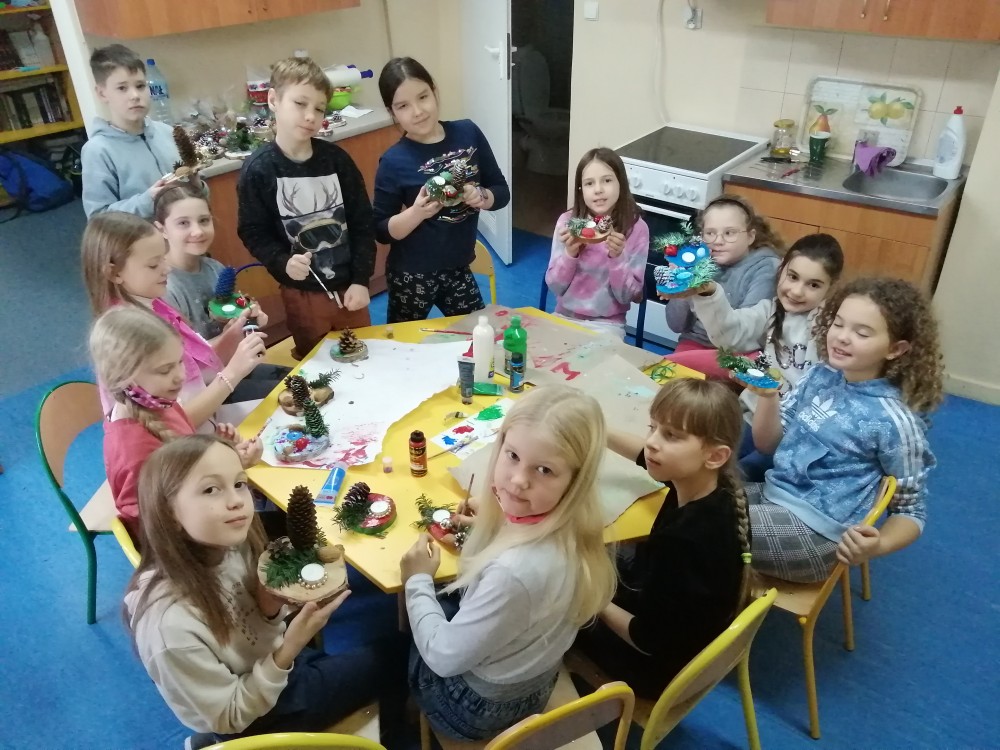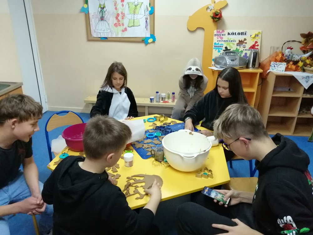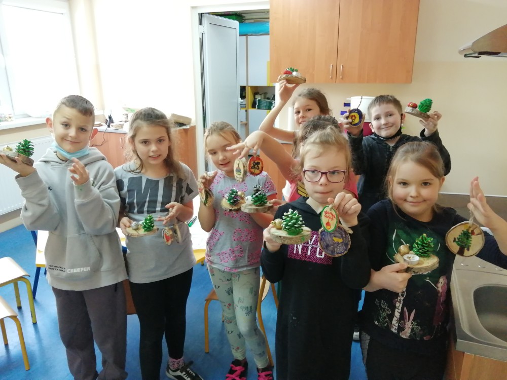 Dzieci w ramach zajęć z języka kaszubskiego w grudniu 2021r nocowały w szkole i poznawały kolejne tajniki kaszubskiej kuchni. Tym razem poznały recepturę na pierniki. Uczniowie samodzielnie wykonali ciasto, wyrobili je, wykrawali i zdobili. Pierniczki były przepyszne i wszystkim bardzo smakowały. Wykonaliśmy je z myślą o kiermaszu bożonarodzeniowym, w który się włączyliśmy. Nocowanie w szkole zawsze dzieciom sprawiają wiele radości. Na kiermasz również wykonaliśmy stroiki(świeczniki) na świąteczny stół.