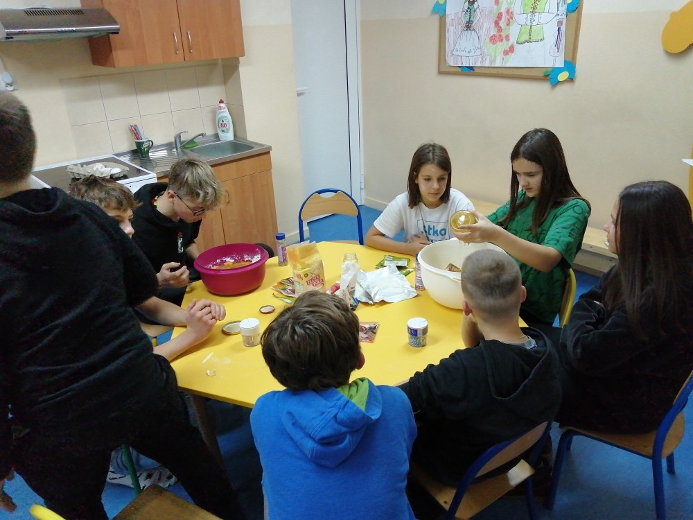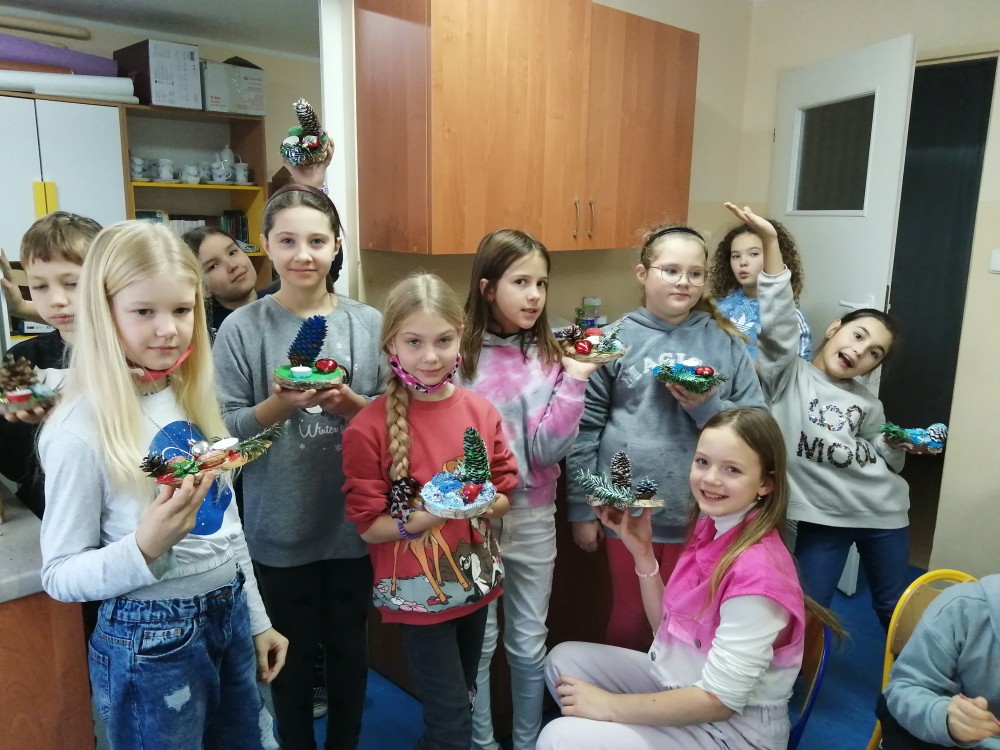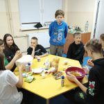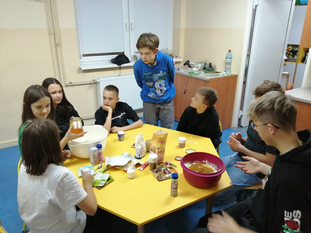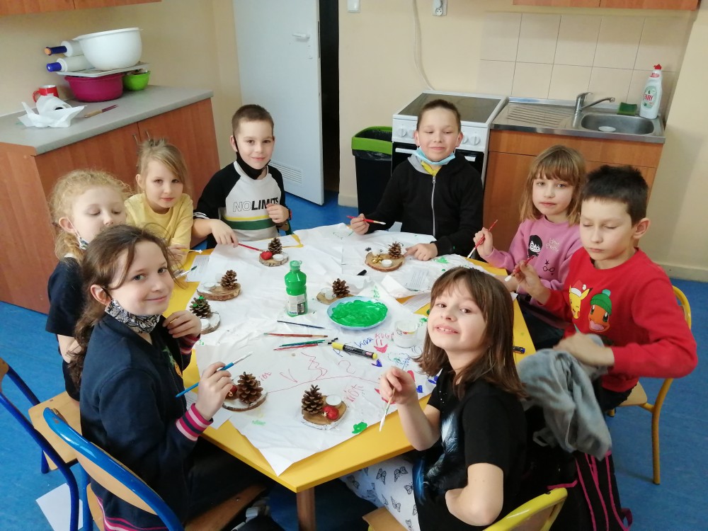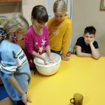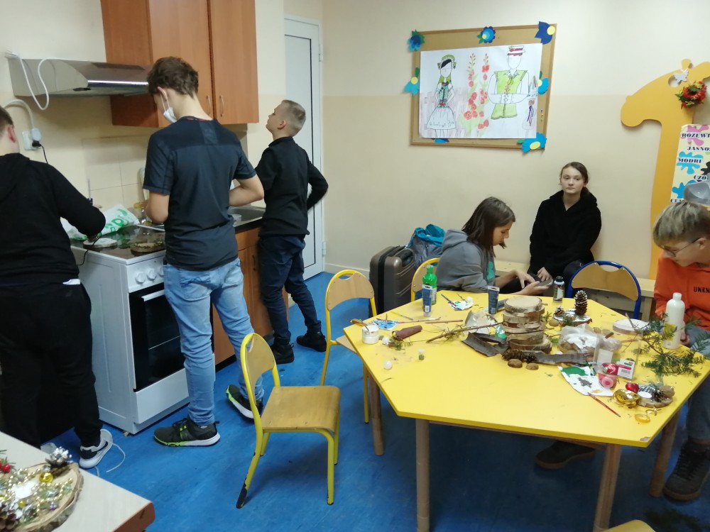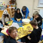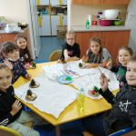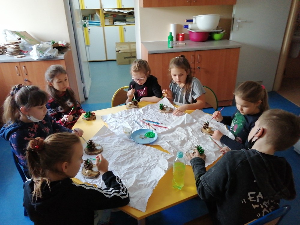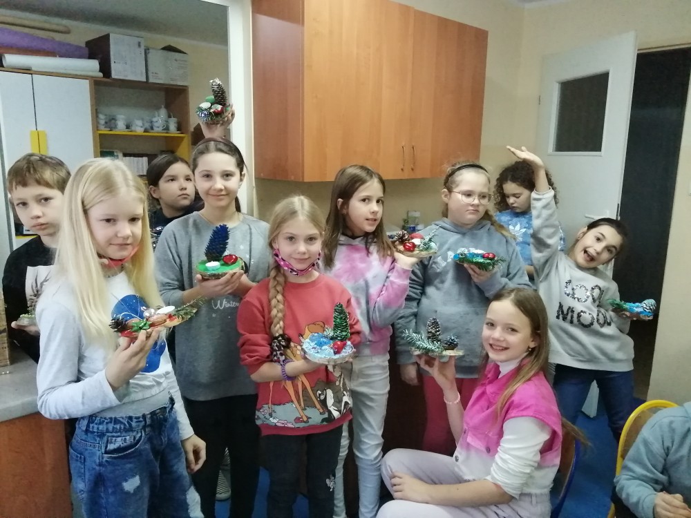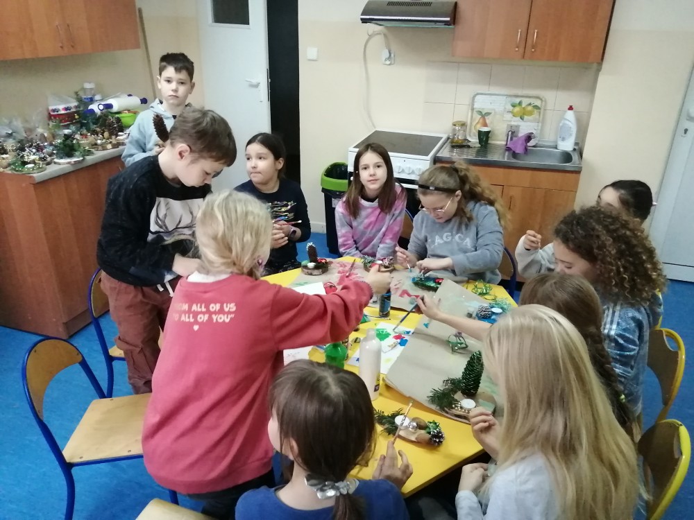 Dzieci w ramach zajęć z języka kaszubskiego w grudniu 2021r nocowały w szkole i poznawały kolejne tajniki kaszubskiej kuchni. Tym razem poznały recepturę na pierniki. Uczniowie samodzielnie wykonali ciasto, wyrobili je, wykrawali i zdobili. Pierniczki były przepyszne i wszystkim bardzo smakowały. Wykonaliśmy je z myślą o kiermaszu bożonarodzeniowym, w który się włączyliśmy. Nocowanie w szkole zawsze dzieciom sprawiają wiele radości. Na kiermasz również wykonaliśmy stroiki(świeczniki) na świąteczny stół.