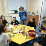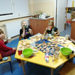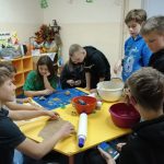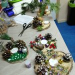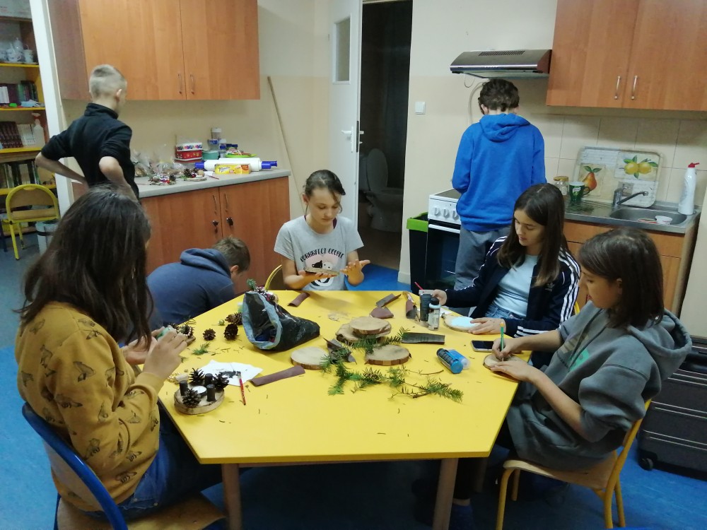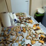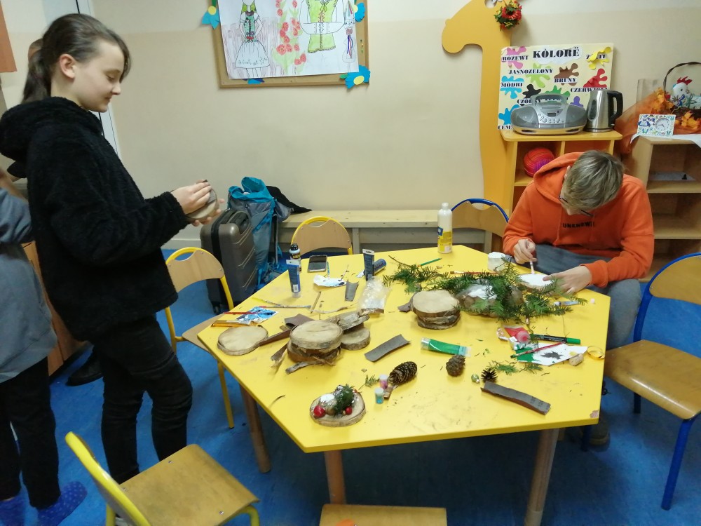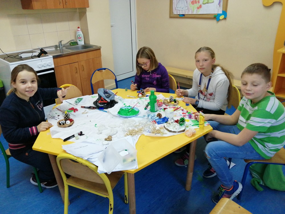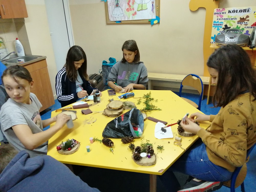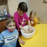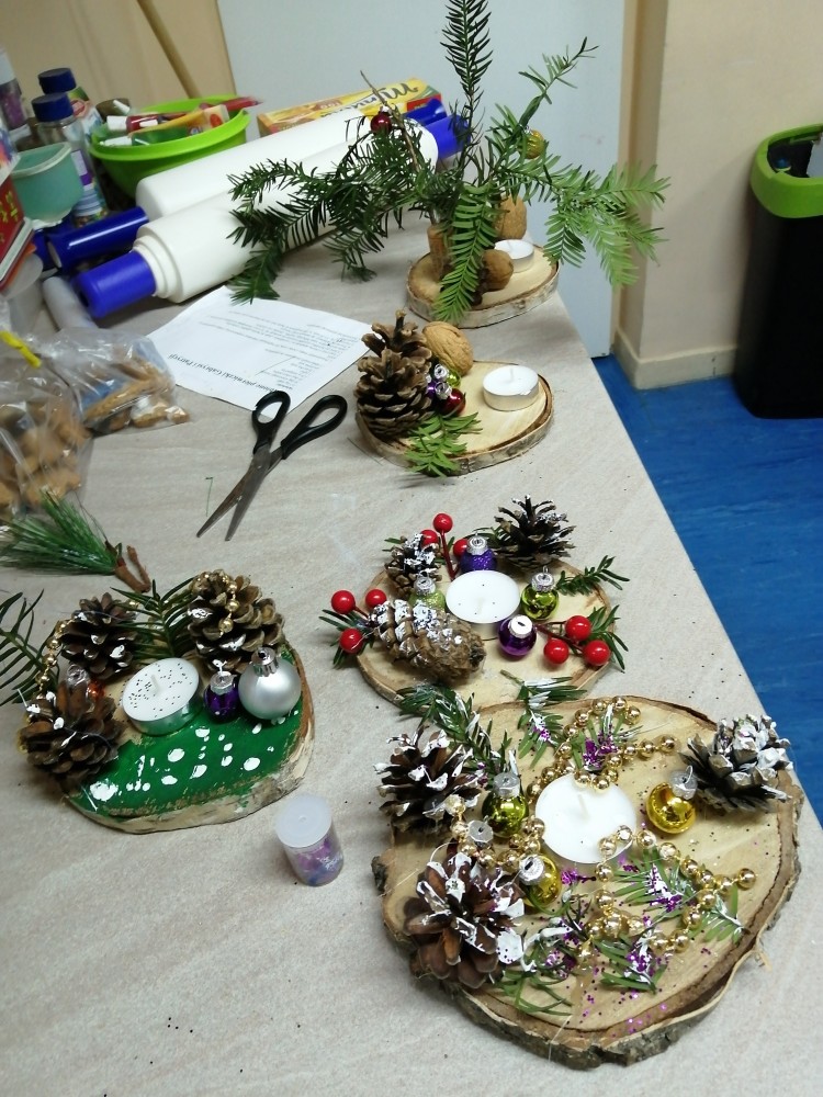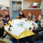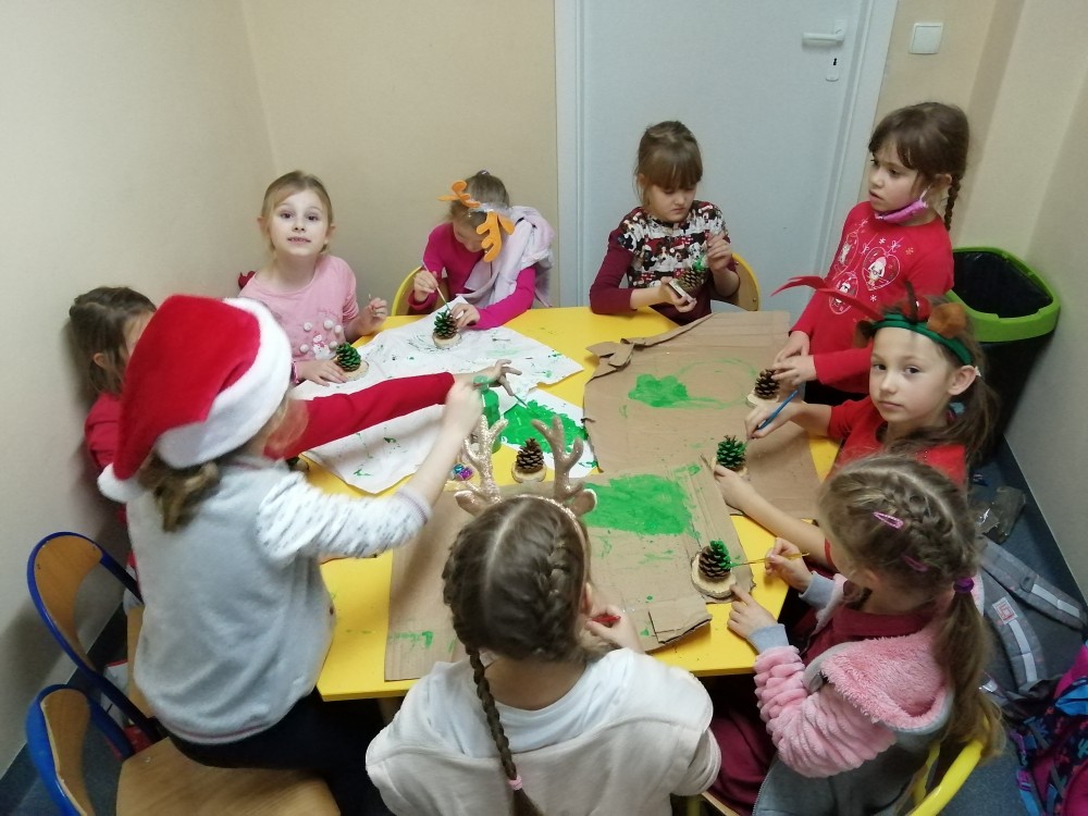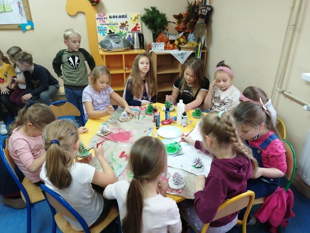 Dzieci w ramach zajęć z języka kaszubskiego w grudniu 2021r nocowały w szkole i poznawały kolejne tajniki kaszubskiej kuchni. Tym razem poznały recepturę na pierniki. Uczniowie samodzielnie wykonali ciasto, wyrobili je, wykrawali i zdobili. Pierniczki były przepyszne i wszystkim bardzo smakowały. Wykonaliśmy je z myślą o kiermaszu bożonarodzeniowym, w który się włączyliśmy. Nocowanie w szkole zawsze dzieciom sprawiają wiele radości. Na kiermasz również wykonaliśmy stroiki(świeczniki) na świąteczny stół.