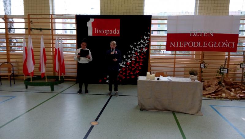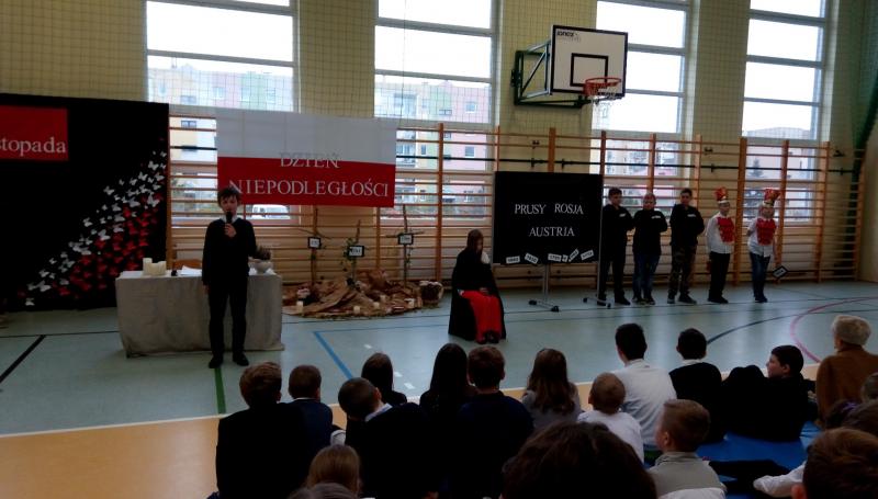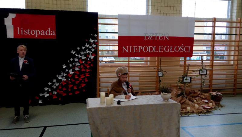 Nawiązując do historycznych wydarzeń będących kanwą listopadowego święta, dyrektor szkoły, p. Iwona Nowicka przypomniała o znaczeniu symboli i wartości narodowych, patriotycznych w obecnych, pokojowych czasach. Szkolne uroczystości przebiegały w radosnym, świątecznym nastroju, pięknie podkreślonym odświętnym strojem uczniów i bogatymi dekoracjami w narodowych barwach.