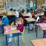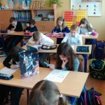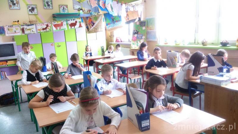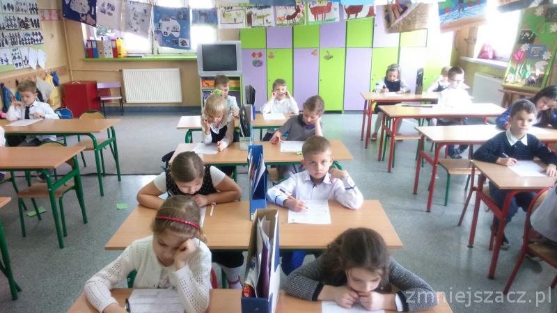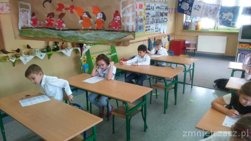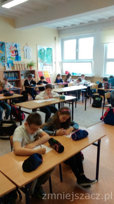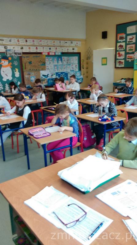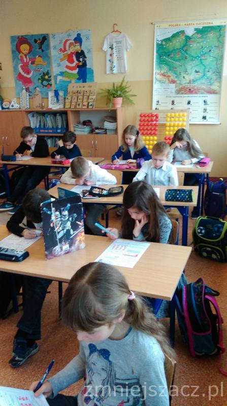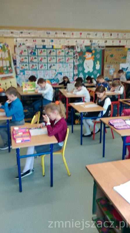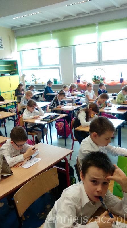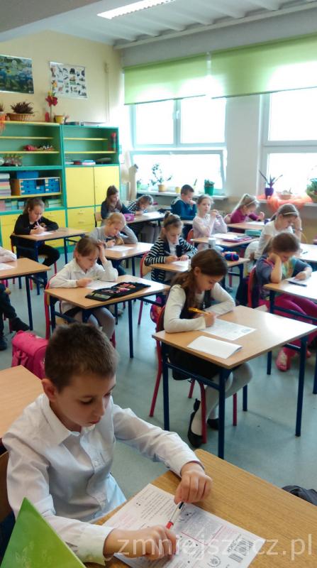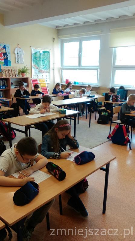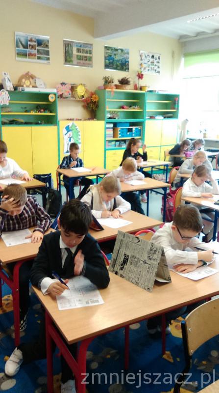 Łącznie uczestniczyło w nim 111 uczniów: 40 z klas pierwszych, 43 z klas drugich oraz 28 z klas trzecich. Dzieci pisały w czterech salach, pod czujną i życzliwą opieką pań: G. Krzebietke, B. Maliszewskiej, A.Radzio i K. Rendaszka-Miotke. Wszystkim gratulujemy udziału, a czekając do maja na wyniki trzymamy kciuki i życzymy sukcesów.