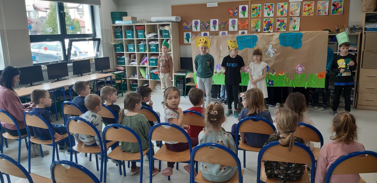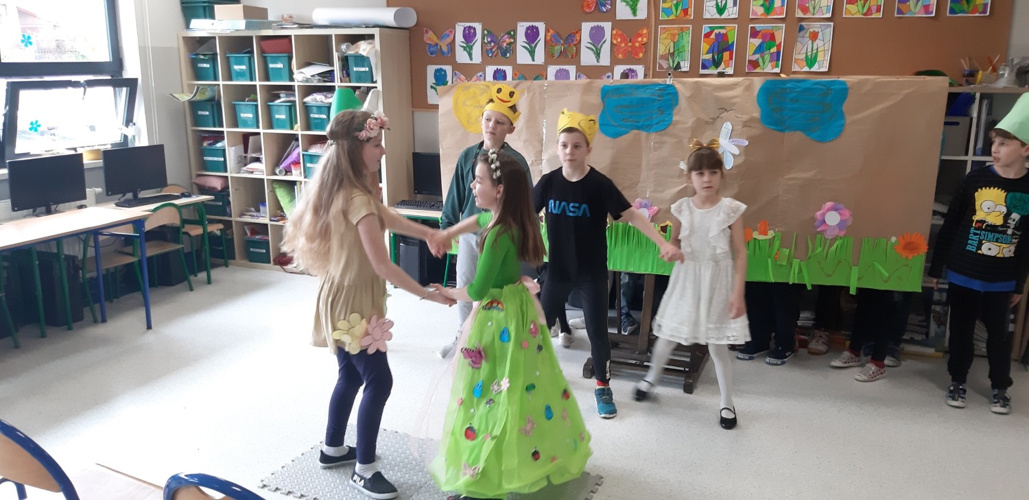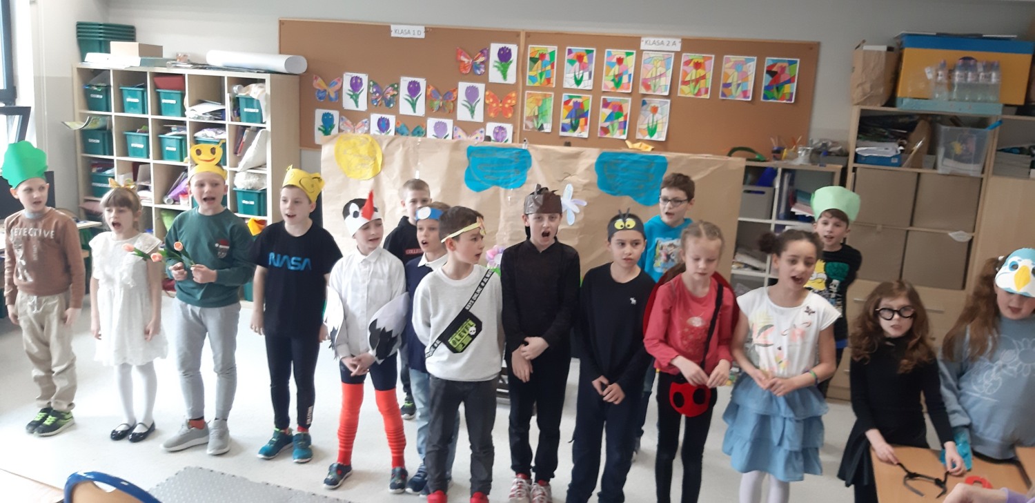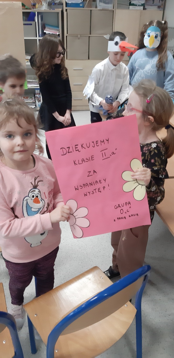 31 marca 2023 r. był dla klasy IIa dniem szczególnie radosnym. Oto w naszej sali pojawili się wyjątkowi goście – wychowankowie Przedszkola z grupy 0c. Przybyli na nasze zaproszenie. Przygotowaliśmy dla nich przedstawienie pt. „Witaj wiosno”. Podczas występu uczniowie wcielili się w różne role: bociana, muchy, pszczoły, przyrody, jaskółeczki, motyla, mrówki pani wiosny i przyrody.