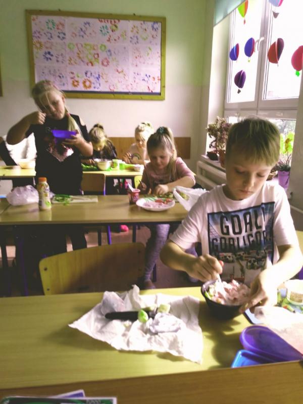 W piątek, 5 września dzieciaki z klasy 2d wykorzystały gruszki, które dostają w ramach akcji „Warzywa i owoce w szkole” i przygotowały przepyszne gruszkowe sałatki.