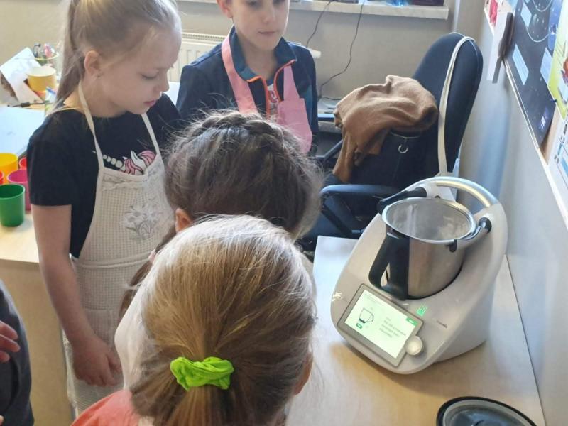 28 lutego podczas zajęć dzieci z klasy I B zrobiły sorbet truskawkowy. Użyły do tego termomixu.