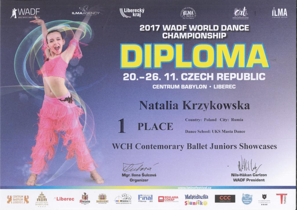 W listopadzie 2017 r., uczennica naszej szkoły Natalia Krzykowska z klasy VI c zdobyła kolejne taneczne Mistrzostwo Świata WADF LIBEREC w Czechach; w kategoriach Contemporary Ballet Juniors Showcases oraz Jazz Dance Juniors Showcases.