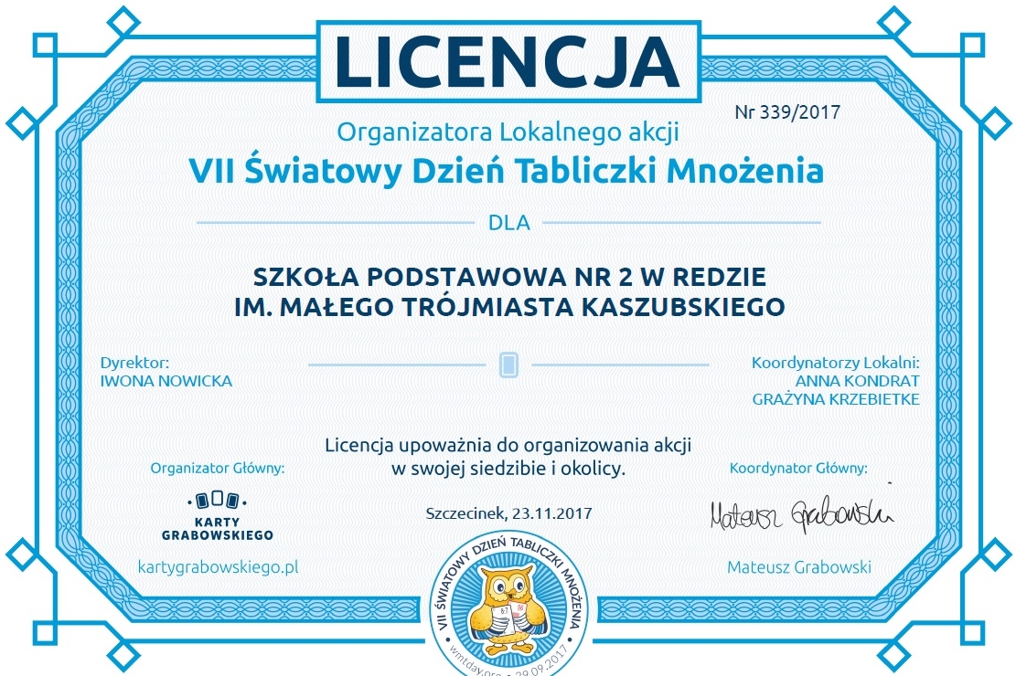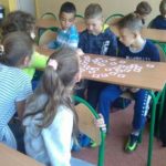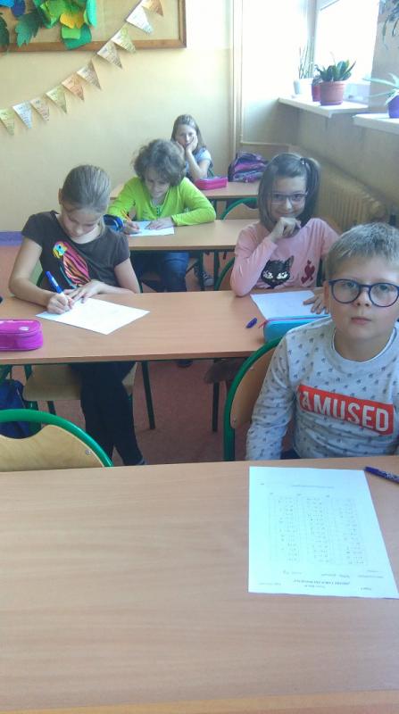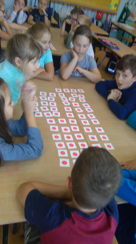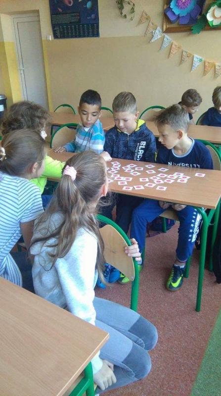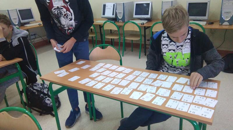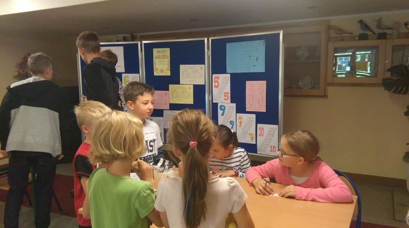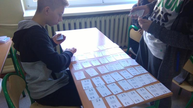 Dzień ten ma na celu zachęcić wszystkich do przypomnienia sobie tabliczki mnożenia. Uczniowie, którzy w trakcie wakacji zdążyli o niej zapomnieć, mają okazję nadrobić te zaległości. Rozwiązywali testy z tabliczki mnożenia, dopasowane do ich poziomu i możliwości. Zostały przeprowadzone lekcje z wykorzystaniem gry edukacyjnej TABLICZKA MNOŻENIA – KARTY GRABOWSKIEGO. Dzieci bawiły się z tabliczką mnożenia poprzez takie gry jak: „sokole oko”, „szeryf”, „pasjans”. Graliśmy także w grę „memo” Kto więcej zapamięta? – Tabliczka mnożenia z M+, dziękuję Pani Barbarze Albeckiej za zabawną i pouczającą lekcję z uczniami z kl. IIIa. Na korytarzu zostały ustawione 2 punkty kontrolne z tabliczki mnożenia. Jeden z losami dla uczniów z klas III – IV, drugi dla uczniów klas V – VII. Na każdej przerwie chętni uczniowie podchodzili, losowali pytania i w ciągu 3 minut rozwiązywali przykłady. Egzaminatorami byli uczniowie z klas VII Maciej Banaś i Kamil Piątkowski, którzy kontrolowali prawidłowy przebieg akcji, pod opieką pań: Joanny Oller – Izdebskiej lub Anny Kondrat.