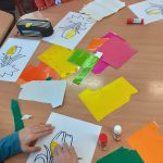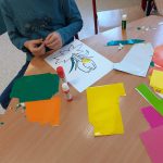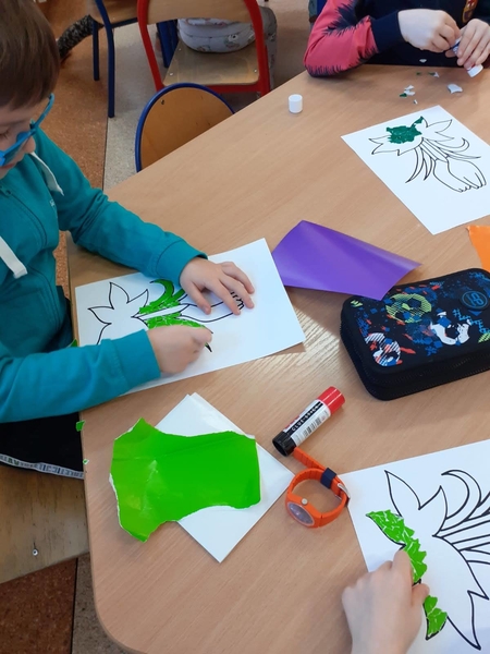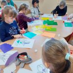 Świetlica po feriach pracuje jak zawsze, „pełną parą”. Zajęcia rozpoczęliśmy od pogadanki nawiązującej do sytuacji na Ukrainie. Dzieci miały dużą wiedzę na temat wojny, ataku na Ukrainę – chętnie wypowiadały się i rozmawiały na ten temat. Zgłaszały sprzeciw i potępienie zła, które tam występuje. Chętnie chcą udzielać pomocy dzieciom z Ukrainy.