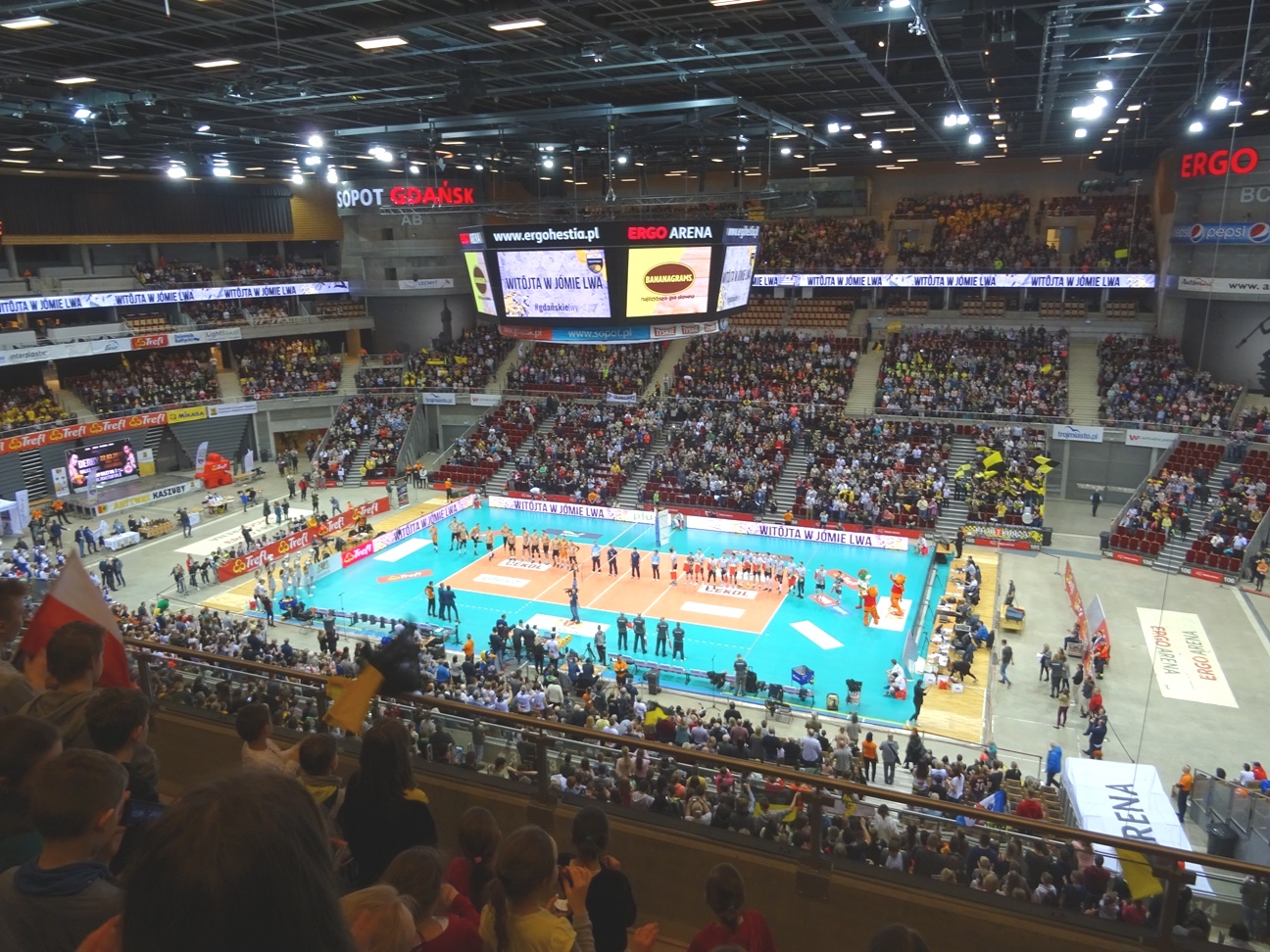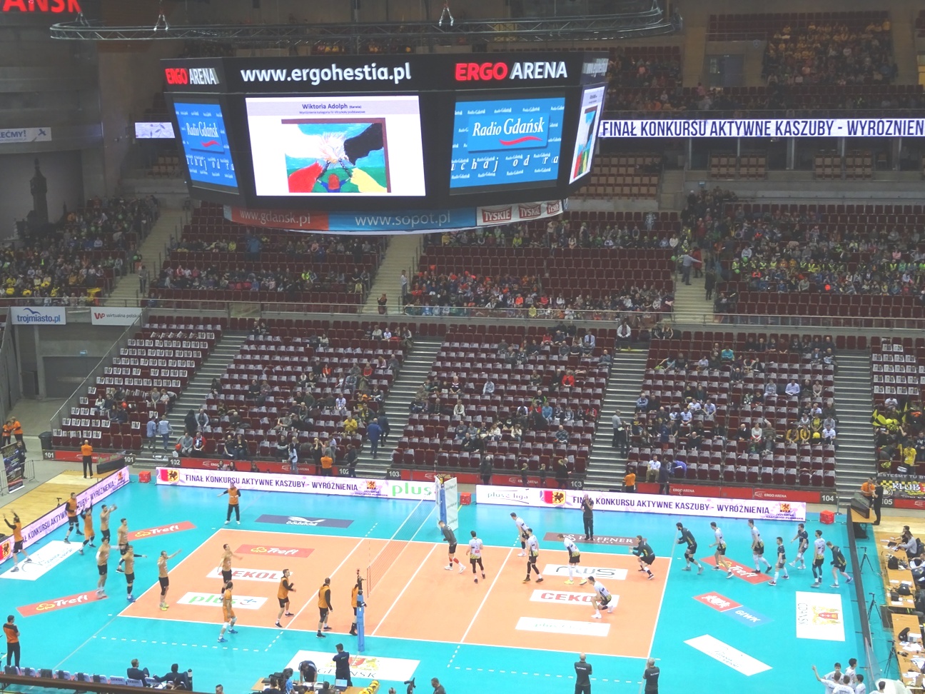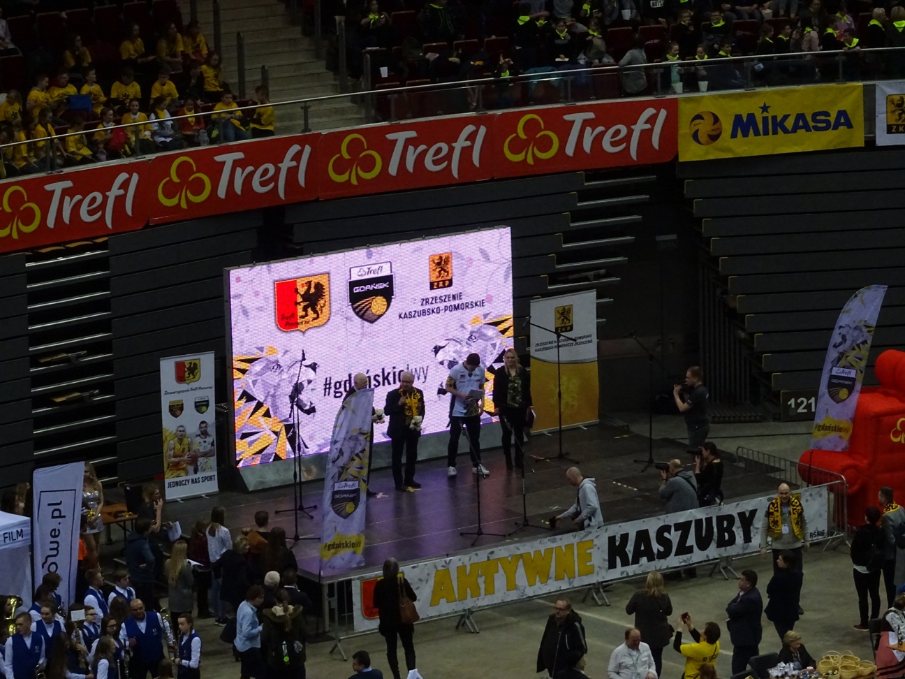 W ubiegły piątek, 16 marca 2018 roku uczniowie uczący się języka kaszubskiego w naszej szkole mieli niezwykłą okazję uczestniczenia w wydarzeniu sportowym na gdańskim stadionie Ergo Arena. Stowarzyszenie Trefl Gdańsk wraz ze Zrzeszeniem Kaszubsko – Pomorskim w ramach programu Aktywne Kaszuby zaprosiło sympatyków języka kaszubskiego na mecz siatkówki pomiędzy drużynami Trefl Gdańsk i Cuprum Lubin.