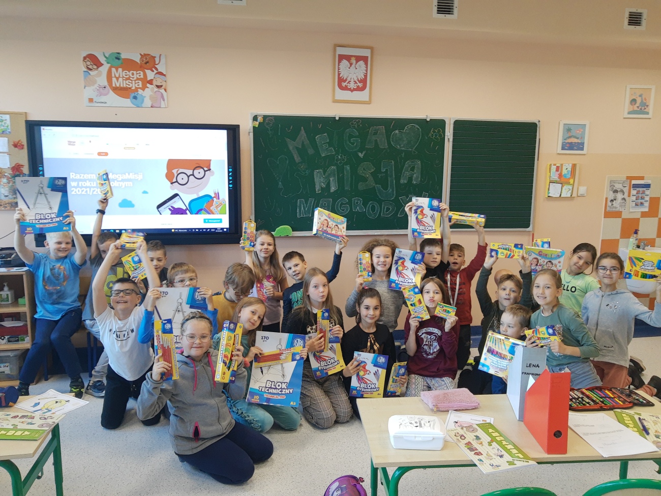 Pierwszy etap już za nami. Za zdobyte „diamenty”  otrzymaliśmy mnóstwo nagród m.in. bloki, farby, plastelinę ,zestawy kreatywne, pędzle, kubki, kredki, pisaki i kolorowanki.