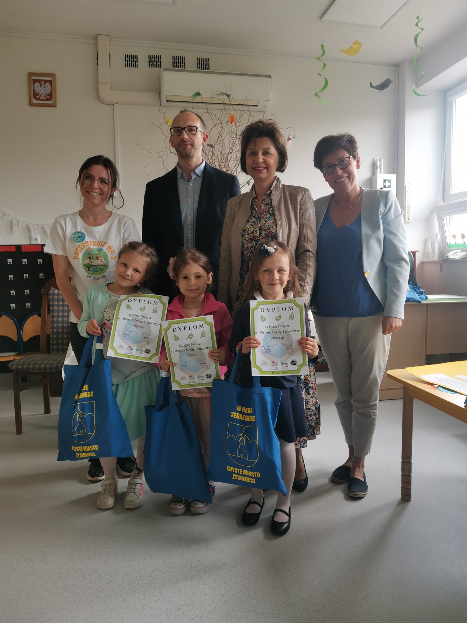 17 maja 2023 r. trzyosobowa „Drużyna marzeń” złożona z uczniów grup zerówkowych naszej szkoły w składzie: Adrianna Hakiel (0b), Julia Kopczewska (0a) i Maja Matwiejczuk (0a) wraz z opiekunem p. Izabelą Oberzig, wzięła udział a II Miejskim Turnieju Ekologicznym. Turniej zorganizowany był przez Przedszkole nr 1 w Redzie. Do rywalizacji stanęły drużyny z siedmiu redzkich szkół i przedszkoli. Turniej składał się z kilku zadań, których poprawne wykonanie bądź wykonanie w jak najszybszym czasie gwarantowało zdobycie punktów. Wszystkie zadania związane były z ekologią i miały na celu wyłonienie drużyny, która o ochronie środowiska i dbałości o Ziemię wie najwięcej.